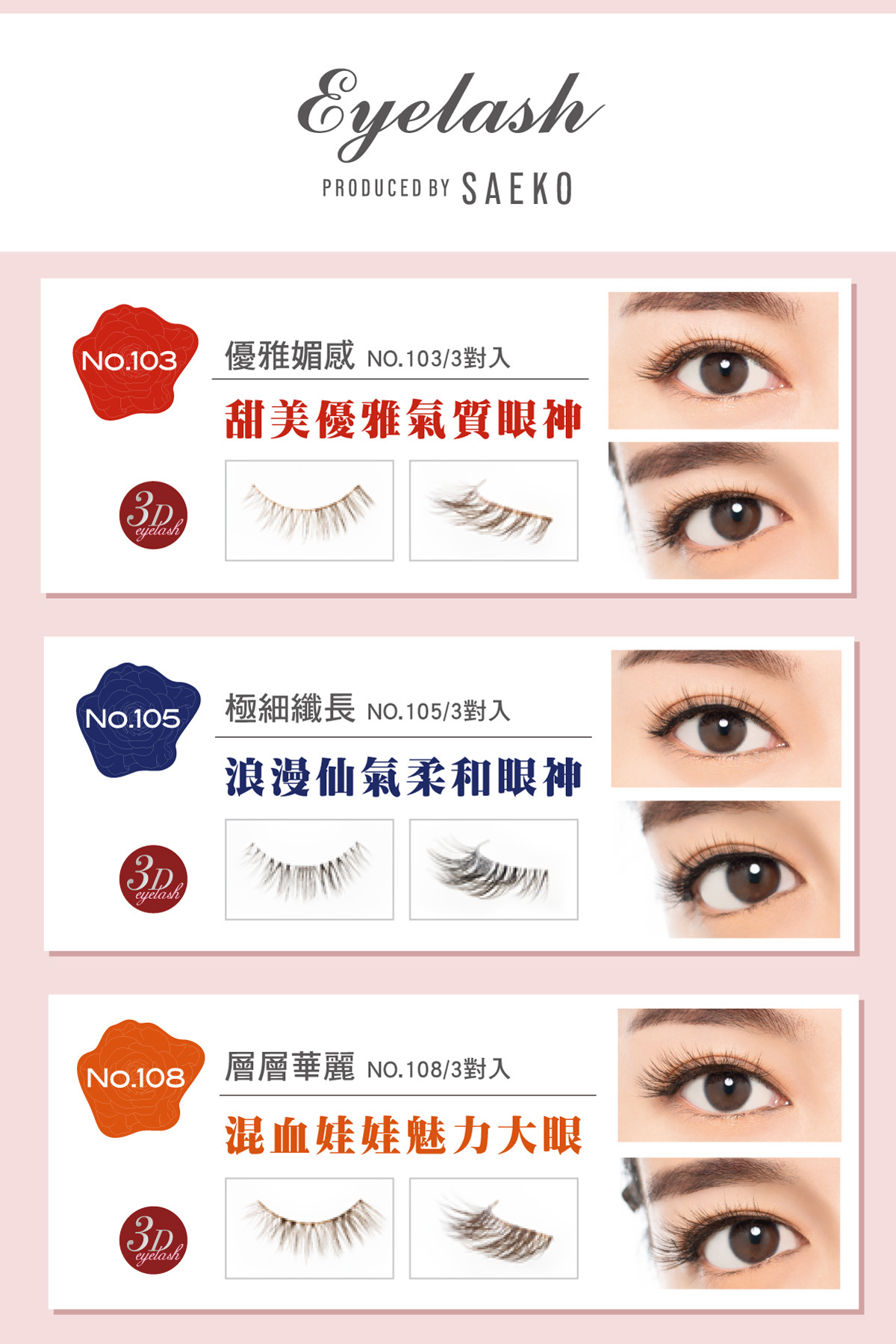【品名】蜜絲綸美假睫毛-SAEKO Brown層層華麗 NO.108/3對入