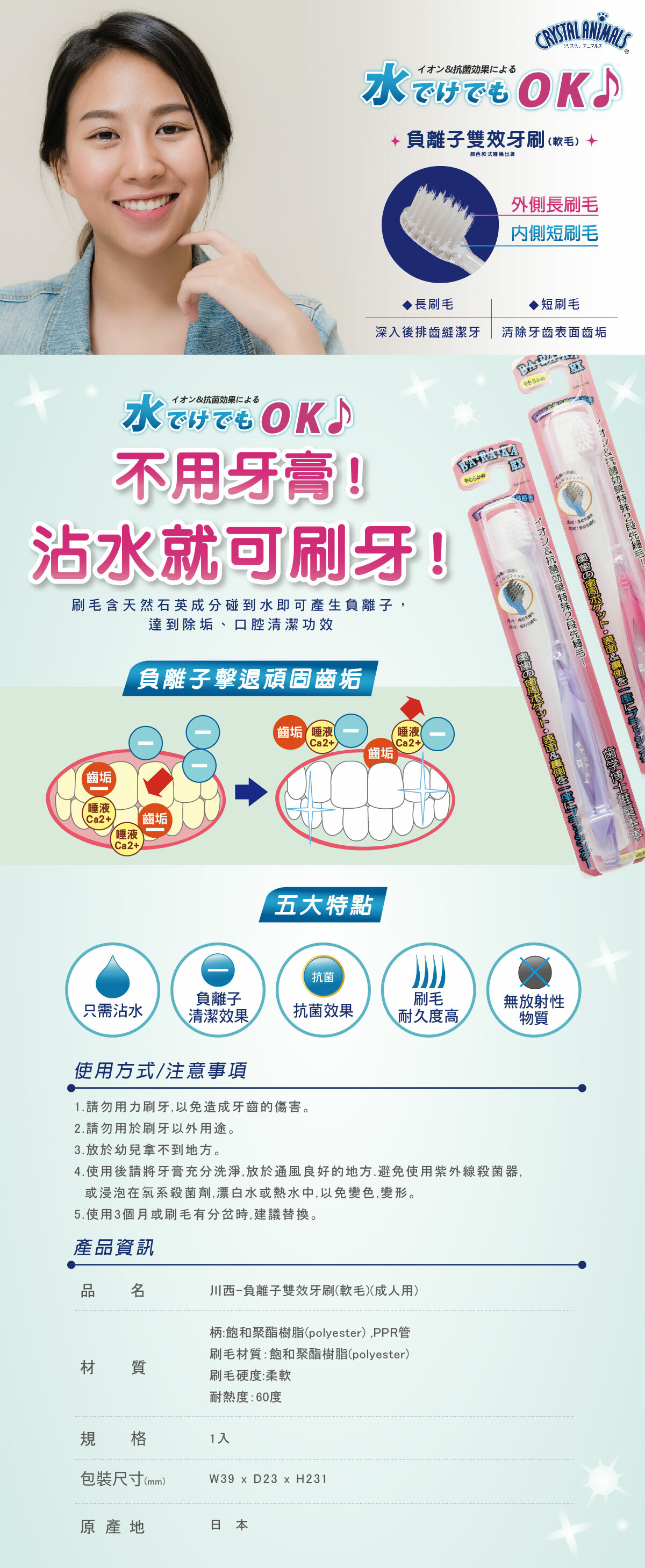 【品名】川西商事 負離子雙效牙刷(軟毛)