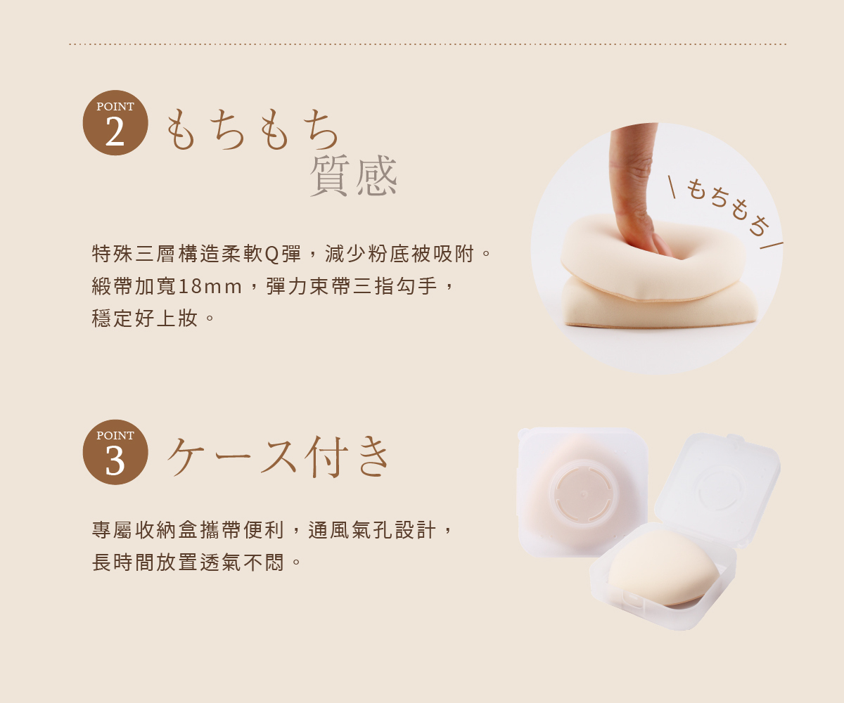 Q彈柔軟的粉撲,緊密貼合肌膚,打造均勻美麗的底妝!