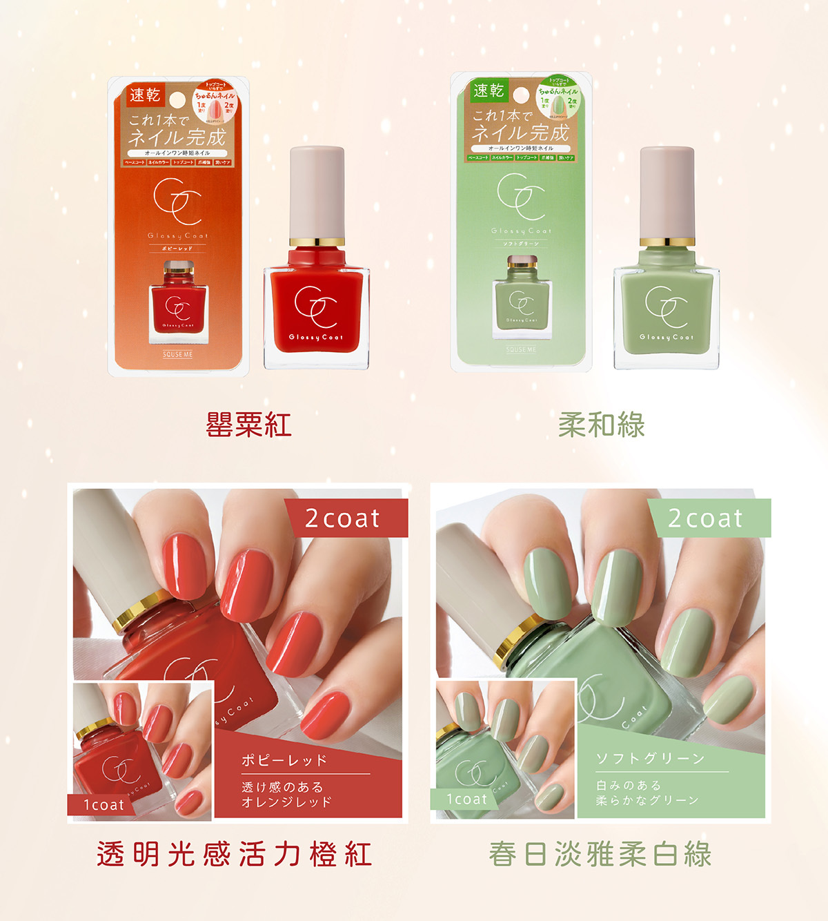 使用方法:清潔指甲後,即可直接塗抹,疊擦更能展現凝膠感光澤效果.