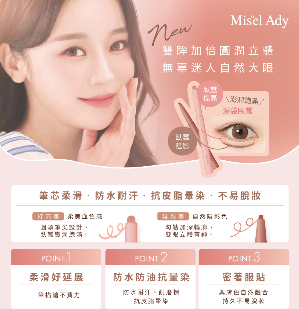 【特點】利用豐滿打亮色心機描繪出柔和的血色臥蠶!含珠光成分打造自然淚袋效果!