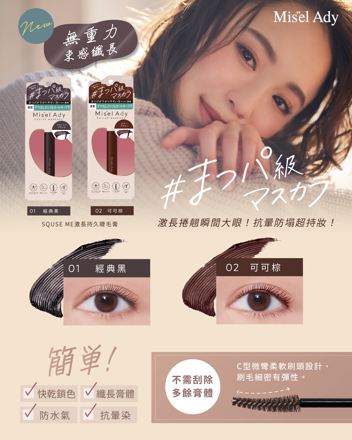 【特點】全新升級!打造燙睫毛等級的纖長捲翹睫毛!獨家刷頭設計,打造不結塊的根根毛束感.速乾配方,防水,防汗,抗皮脂.讓睫毛長時間保持捲翹.添加海藻萃取物,滋潤養護睫毛.