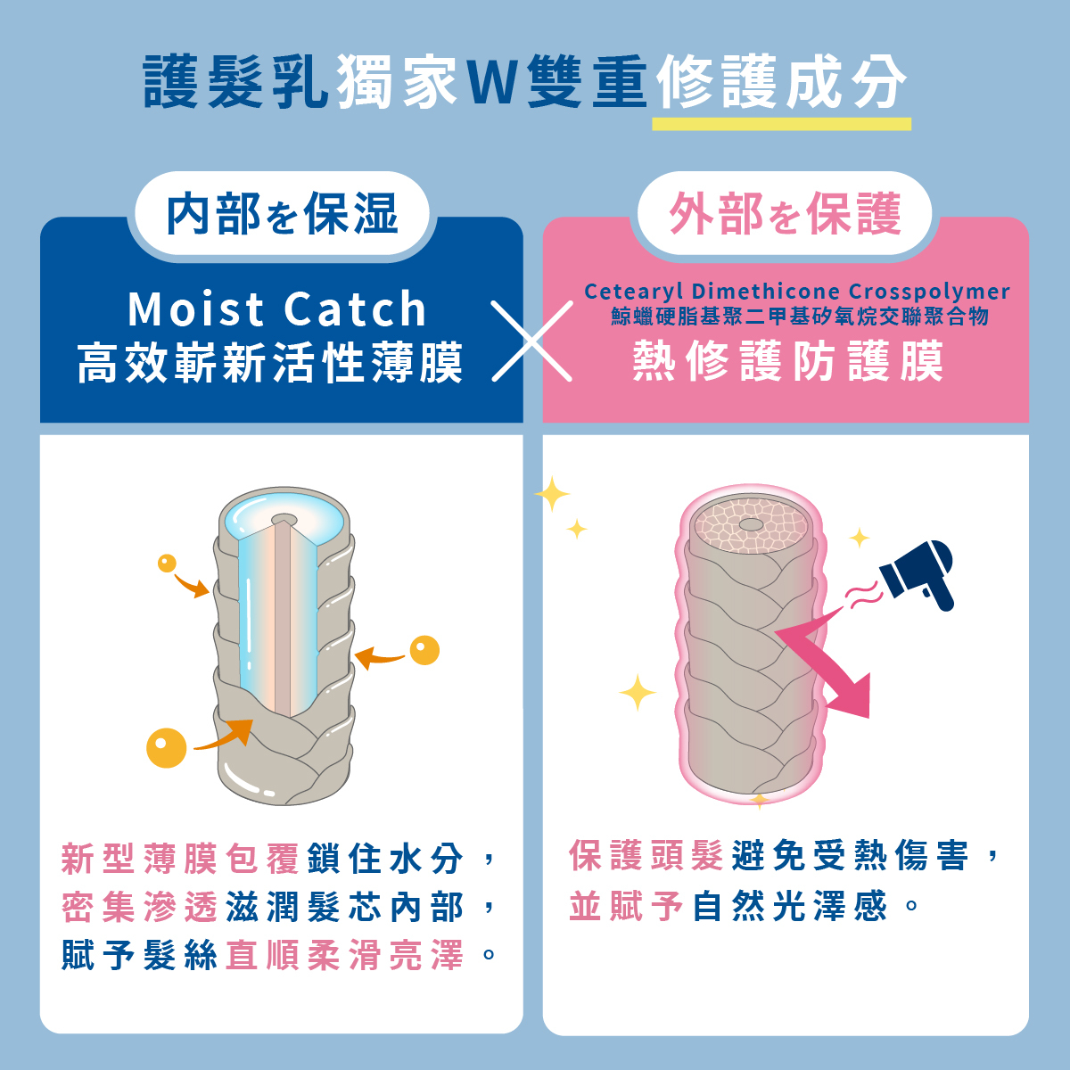 獨家W雙重護髮新型成分,深入修護滋養髮芯,