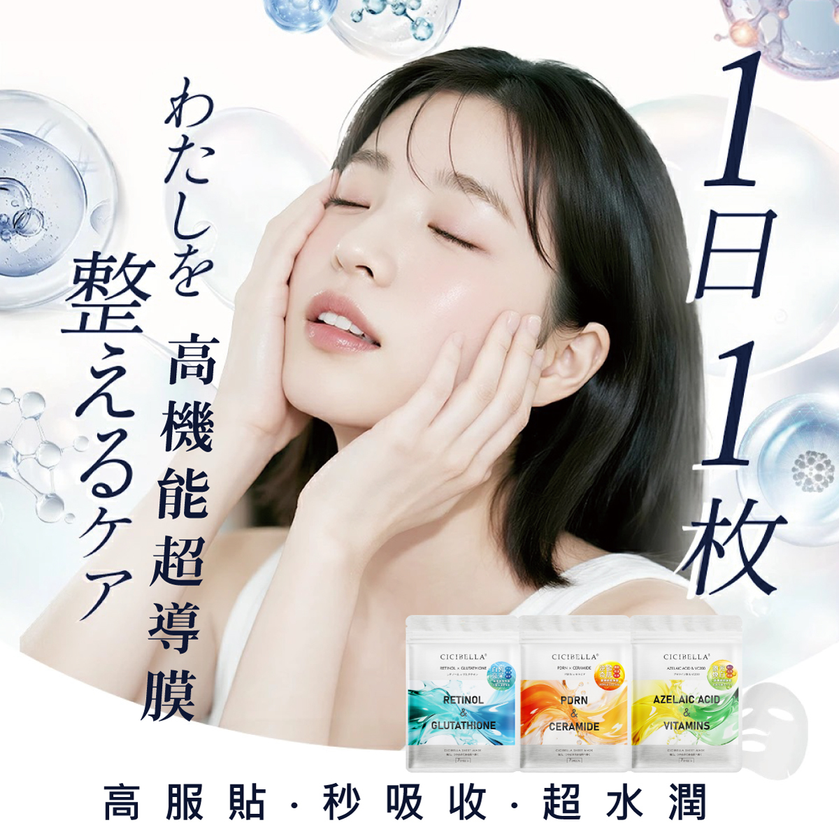 高機能超導膜,極致服貼超導滲透,密集保濕澎潤明亮.