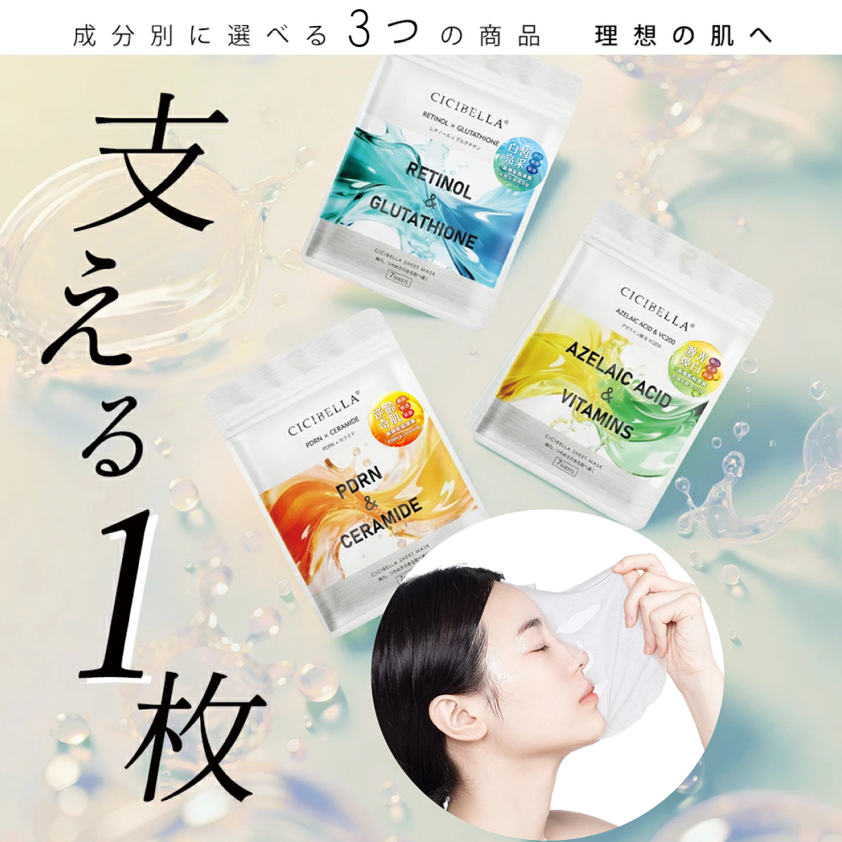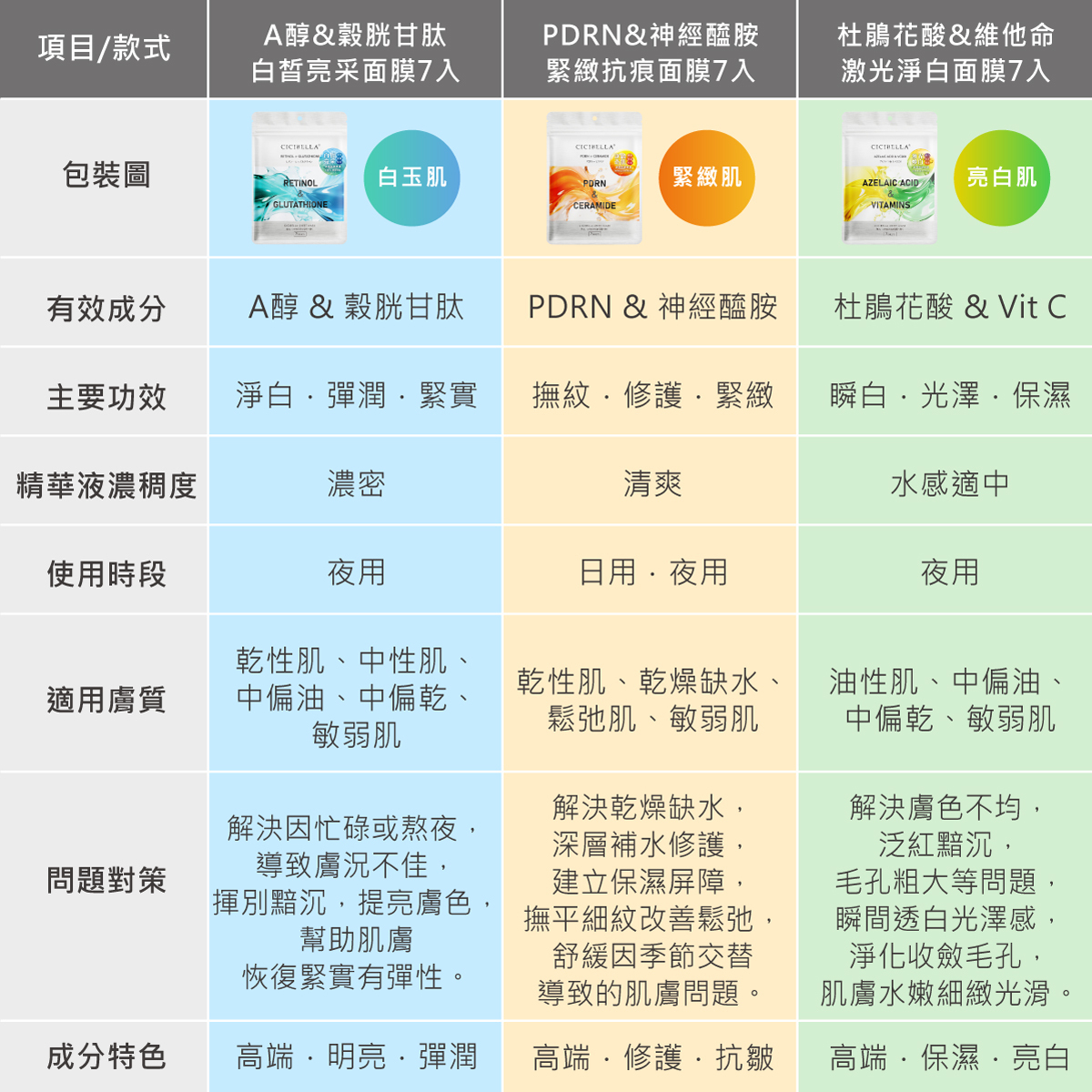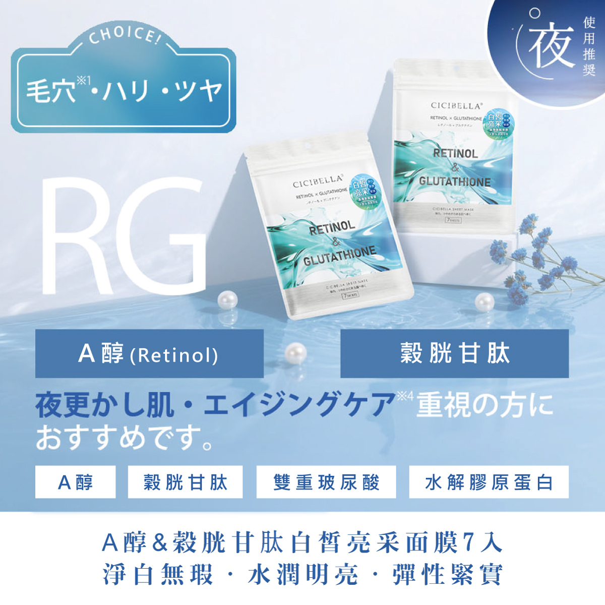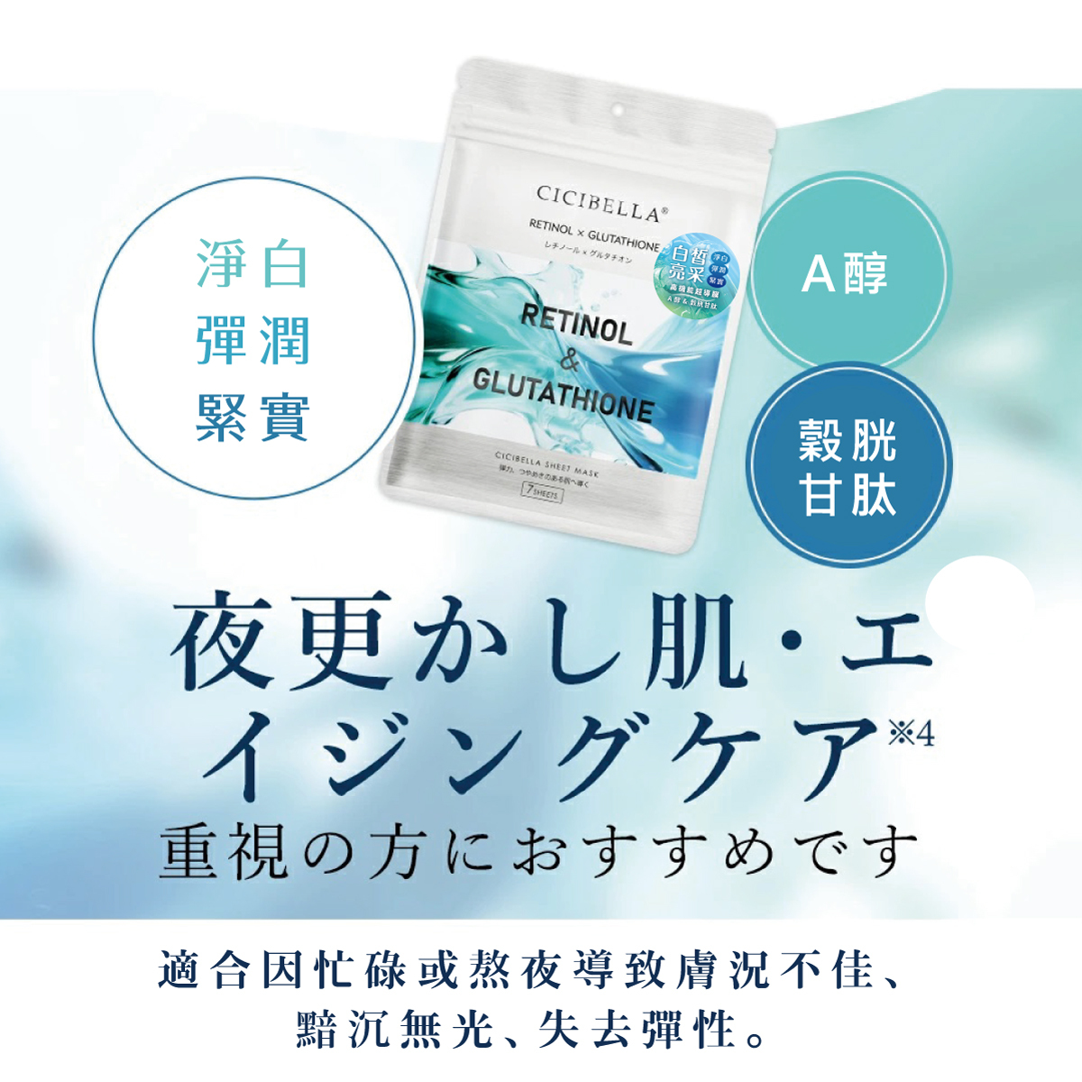 品名:CICIBELLA A醇&穀胱甘肽白皙亮采面膜7入