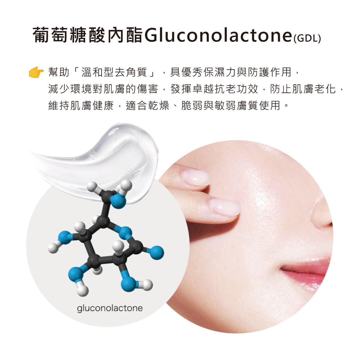 3.葡萄糖酸內酯(GDL)軟化角質,幫助精華導入滲透.