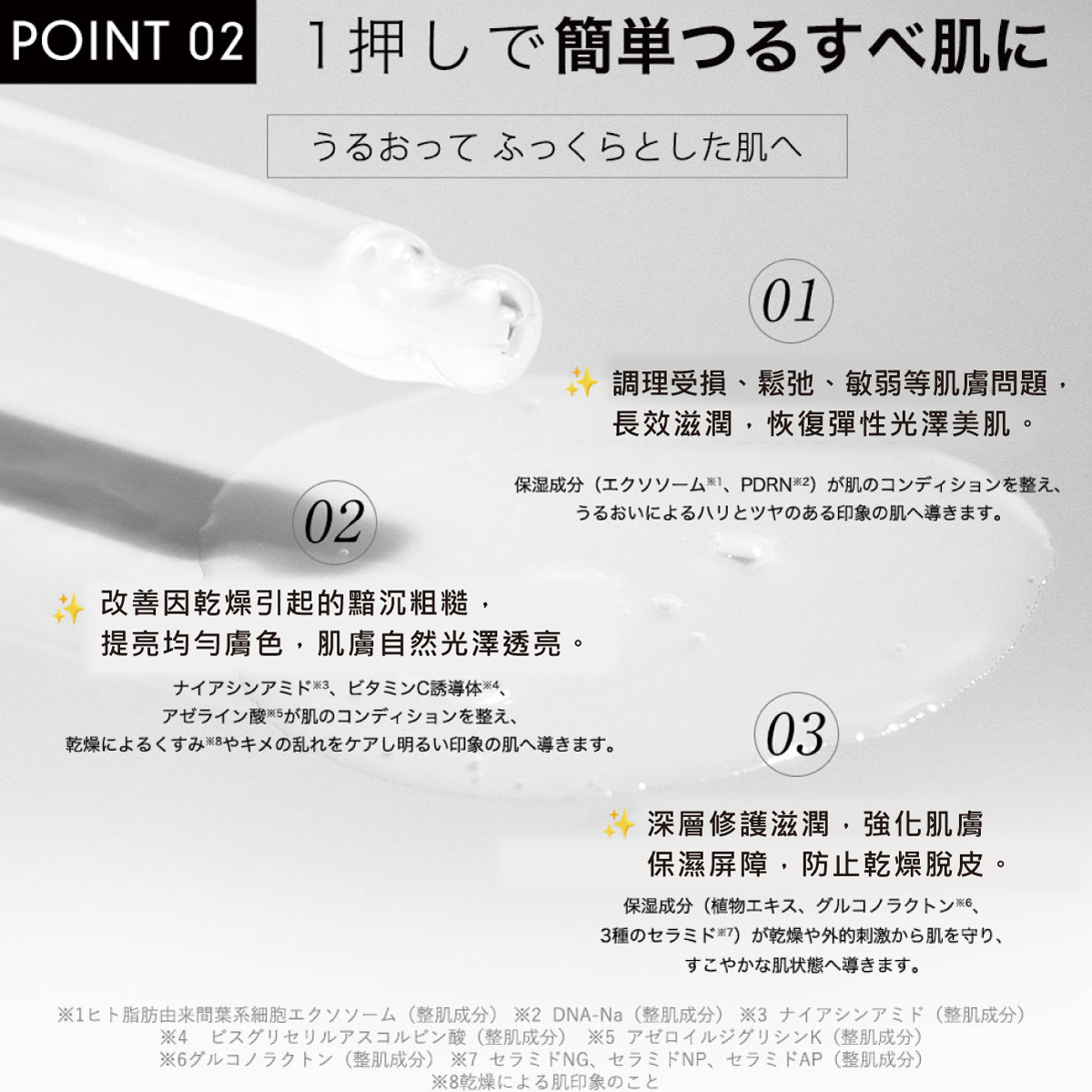 1.珍貴PDRN(鮭魚提煉),深層修護,撫平細紋,保濕屏障.