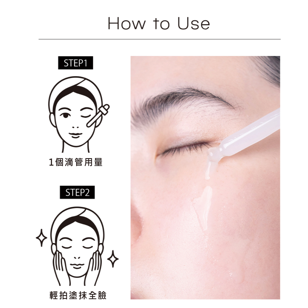 使用方法:使用化妝水後,取適量於手心,輕柔地均勻塗抹於臉部肌膚,使其充分吸收.針對特別在意的部位,建議加強重複使用.