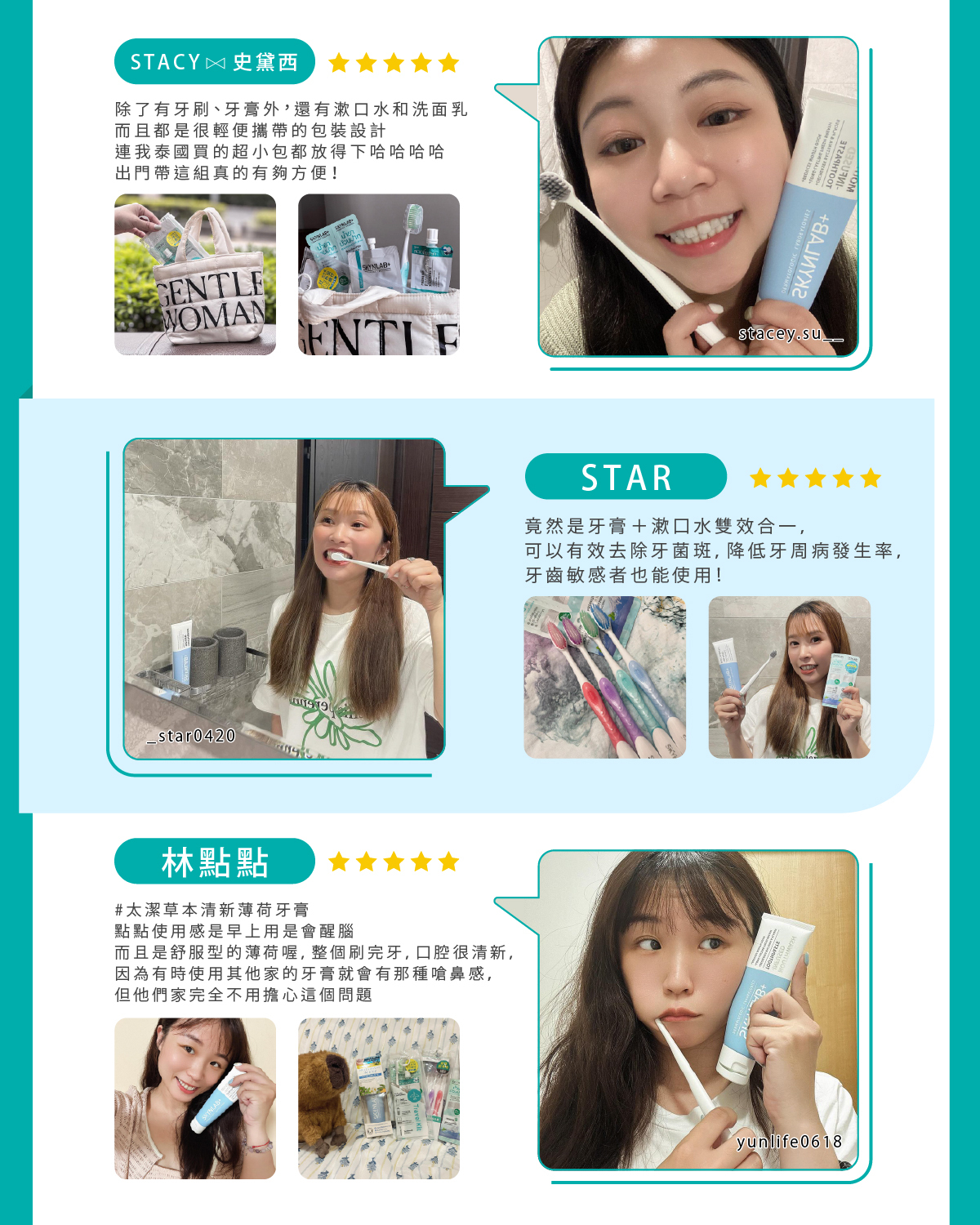 〔牙膏〕取適量於牙刷上,用標準刷牙法刷牙。(需配合正確刷牙習慣)