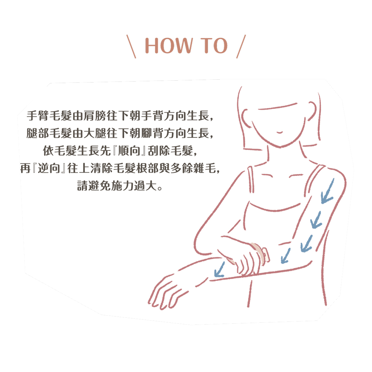 無論用哪隻手持握,都能順應毛流刮除的舒適握柄