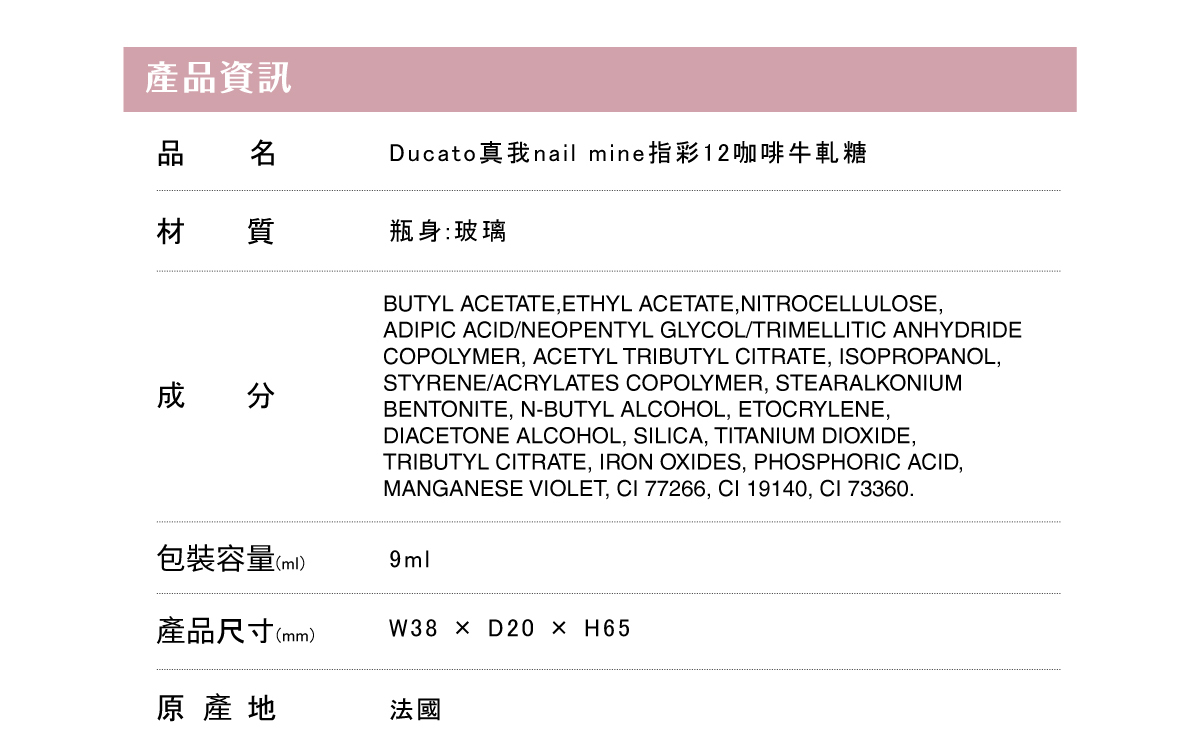 【產品名稱】DUCATO真我nail mine指彩12咖啡牛軋糖