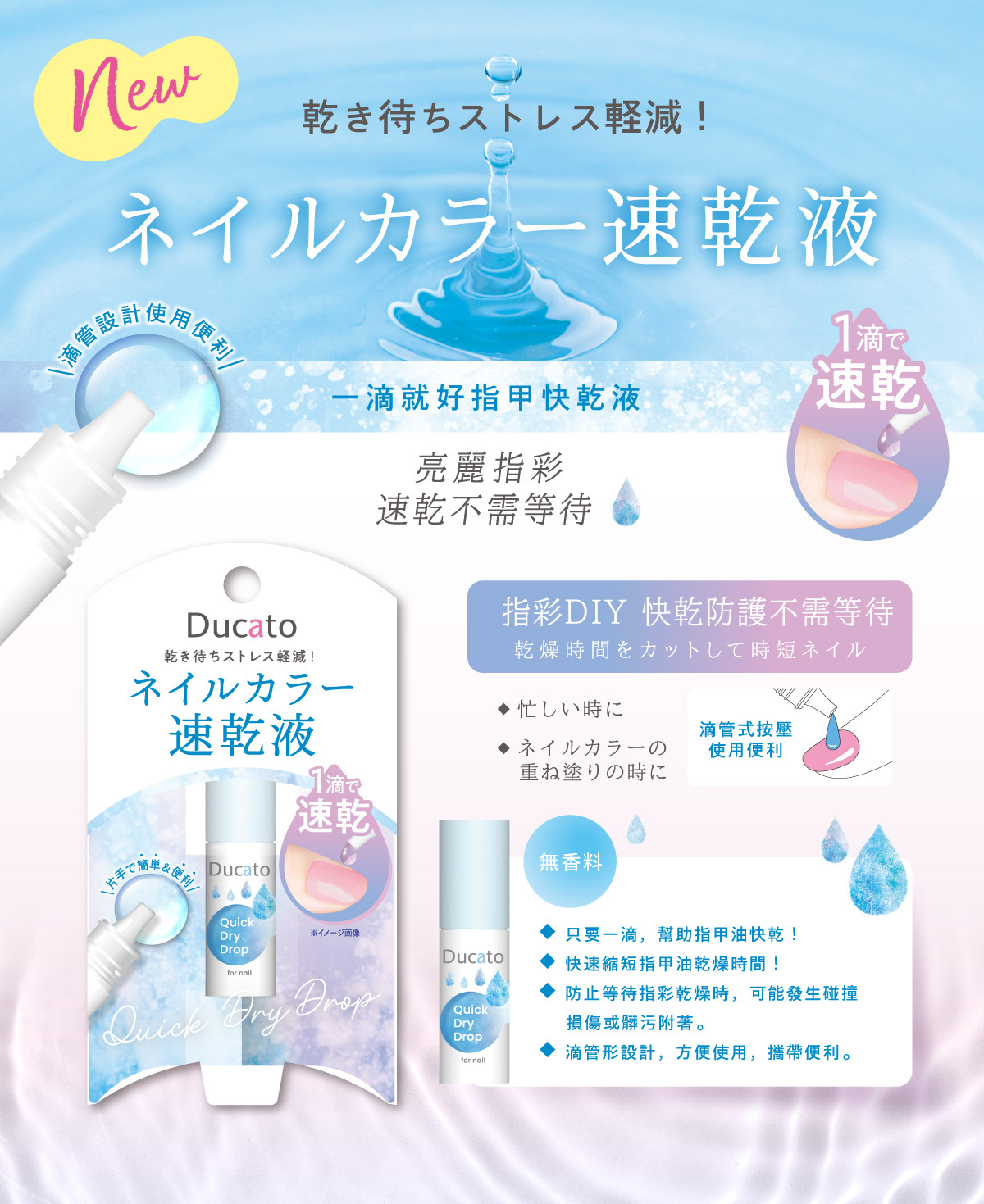 只要一滴,就能短時間內快速乾燥指甲油.
