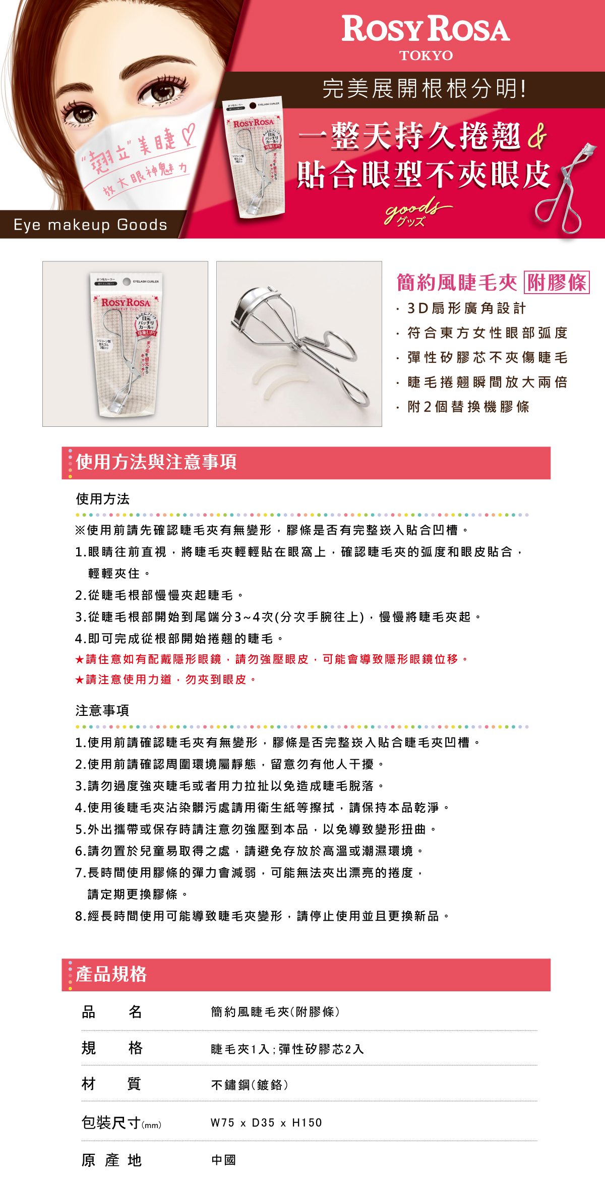 【品名】ROSY ROSA 簡約風睫毛夾(附膠條)1入