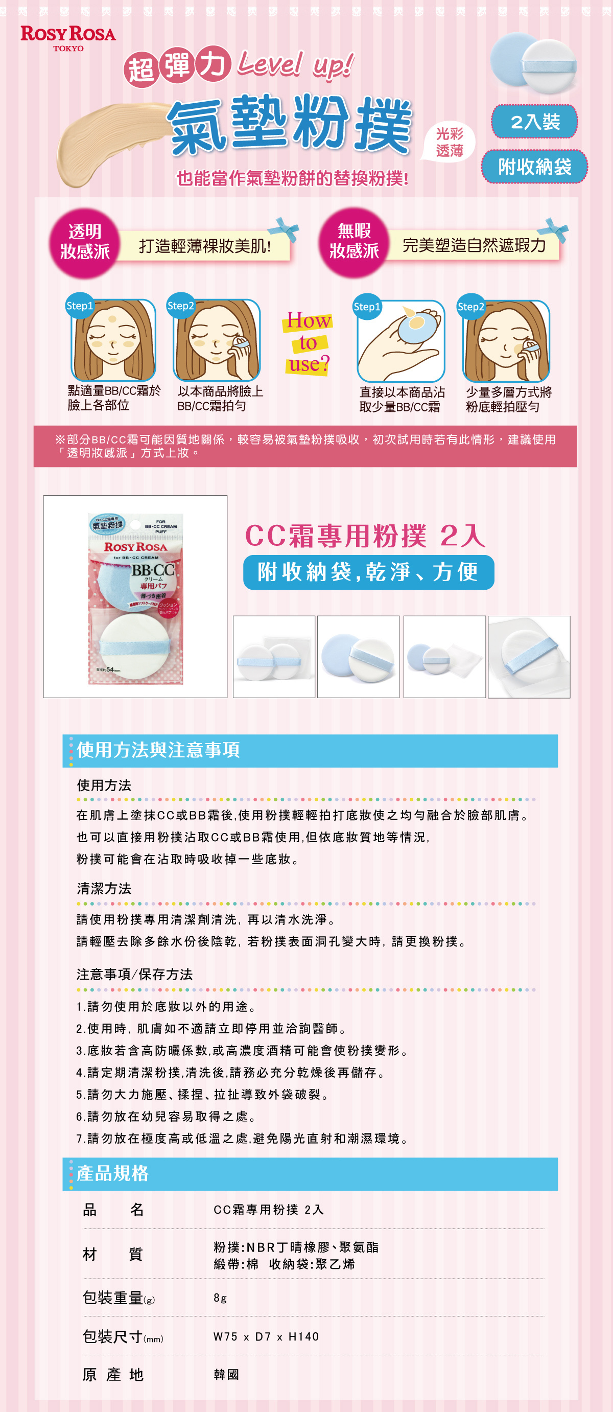 【品名】ROSY ROSA CC霜專用粉撲 2入