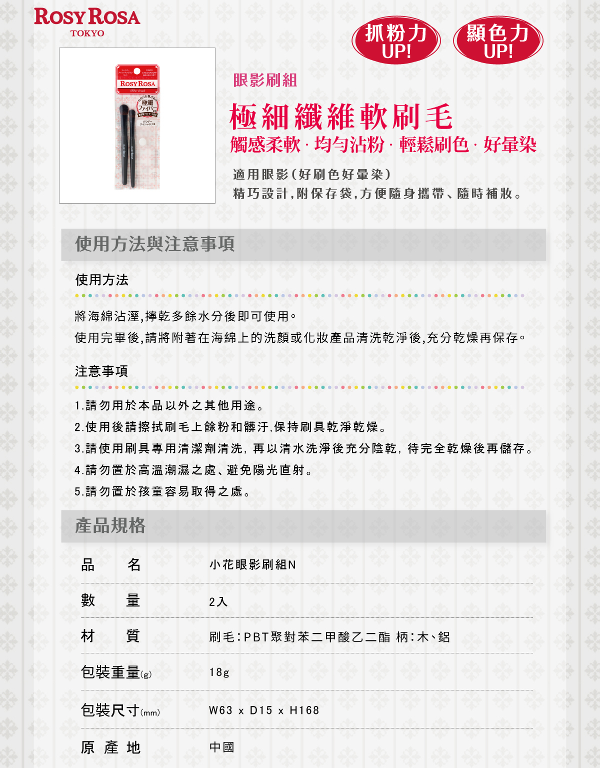 【品名】ROSY ROSA 小花眼影刷組N 2入