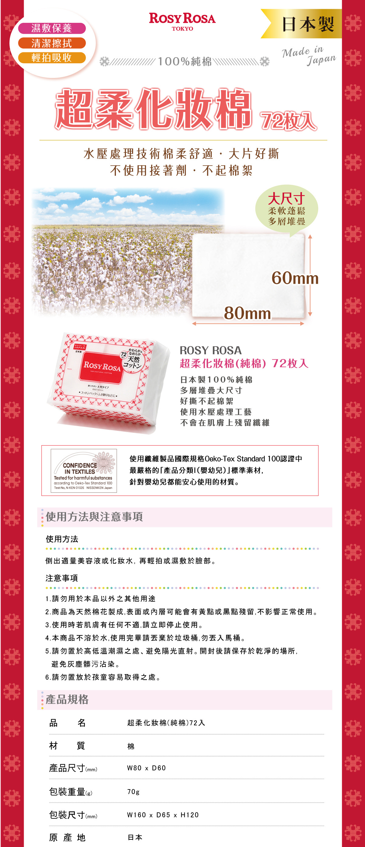 【產品名稱】ROSY ROSA 超柔化妝棉(純棉) 72入