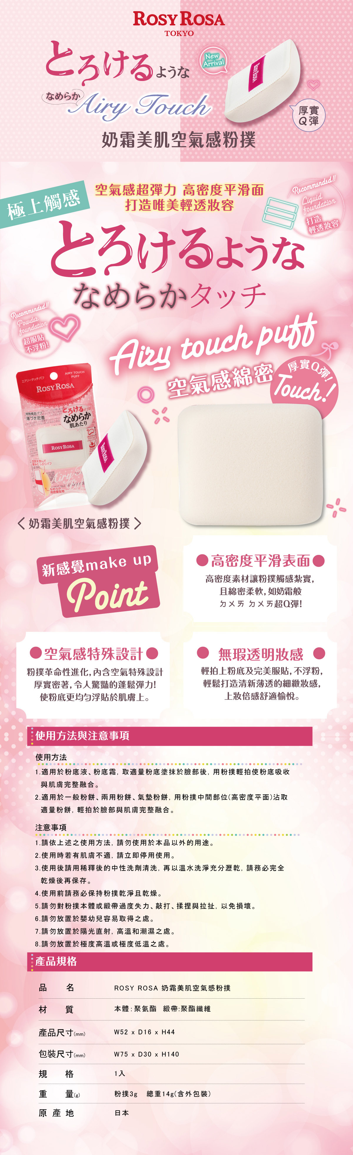 【產品名稱】ROSY ROSA 奶霜美肌空氣感粉撲 1入