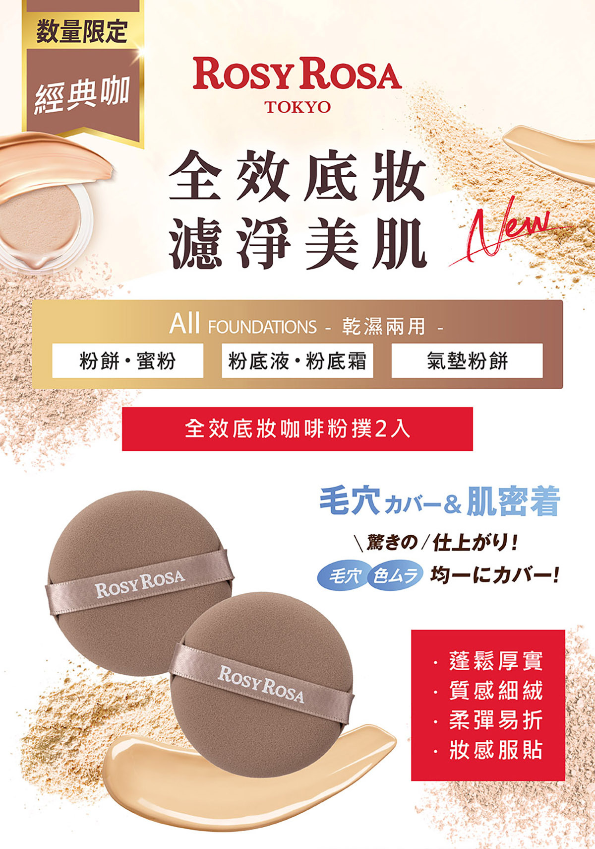 【產品名稱】ROSY ROSA 全效底妝咖啡粉撲