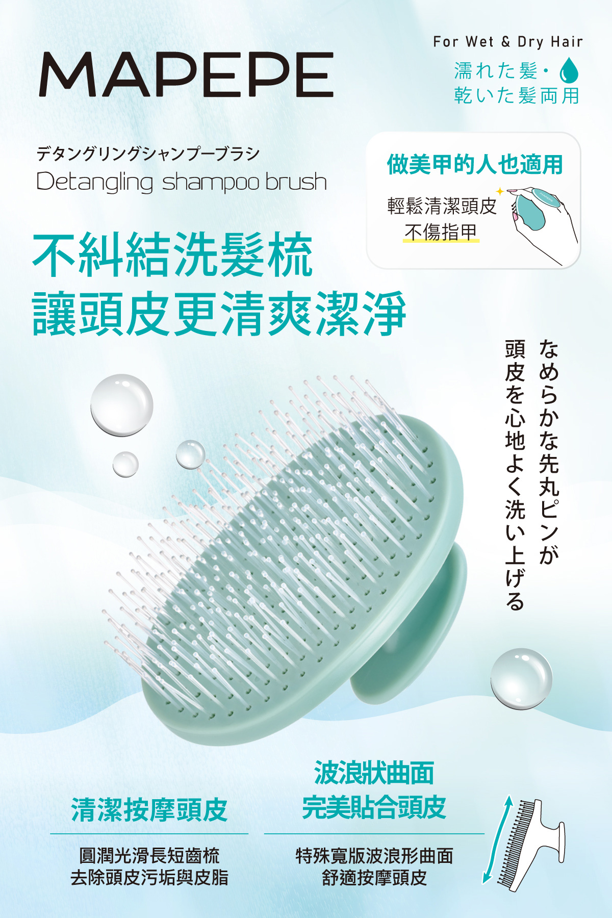 採圓頭長短齒梳設計,圓頭齒梳深入頭皮,洗淨手指難以清潔的污垢與皮脂.
