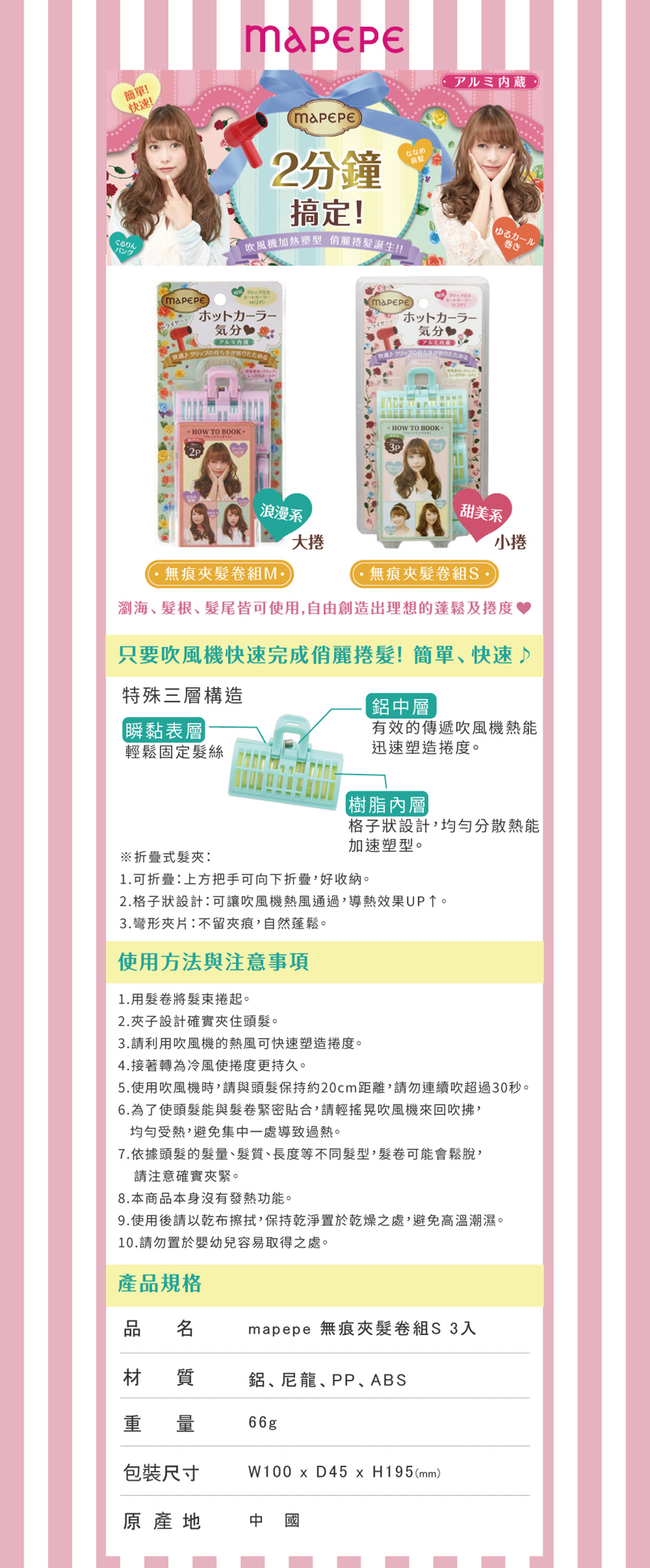 【品名】Mapepe無痕夾髮卷組S/3p-858237