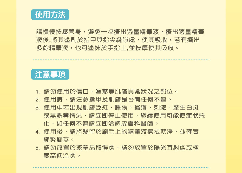 2.使用時,請注意指甲及肌膚是否有任何不適。