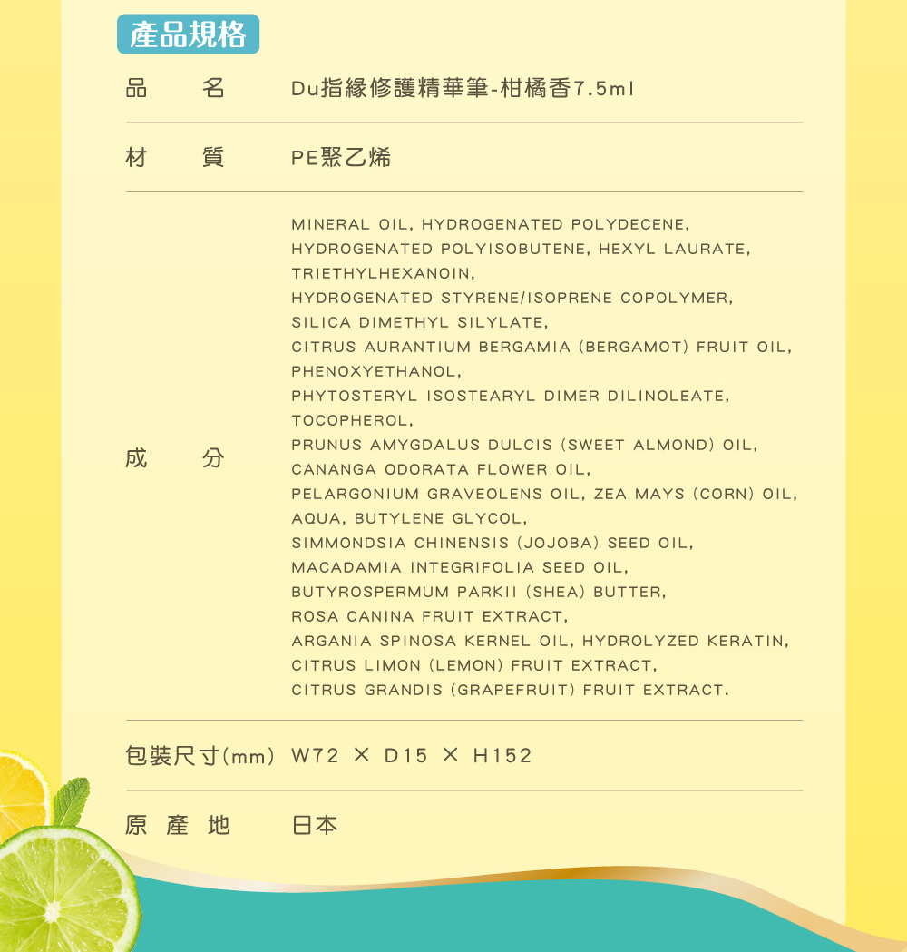 【品名】Du指緣修護精華筆-柑橘香7.5ml