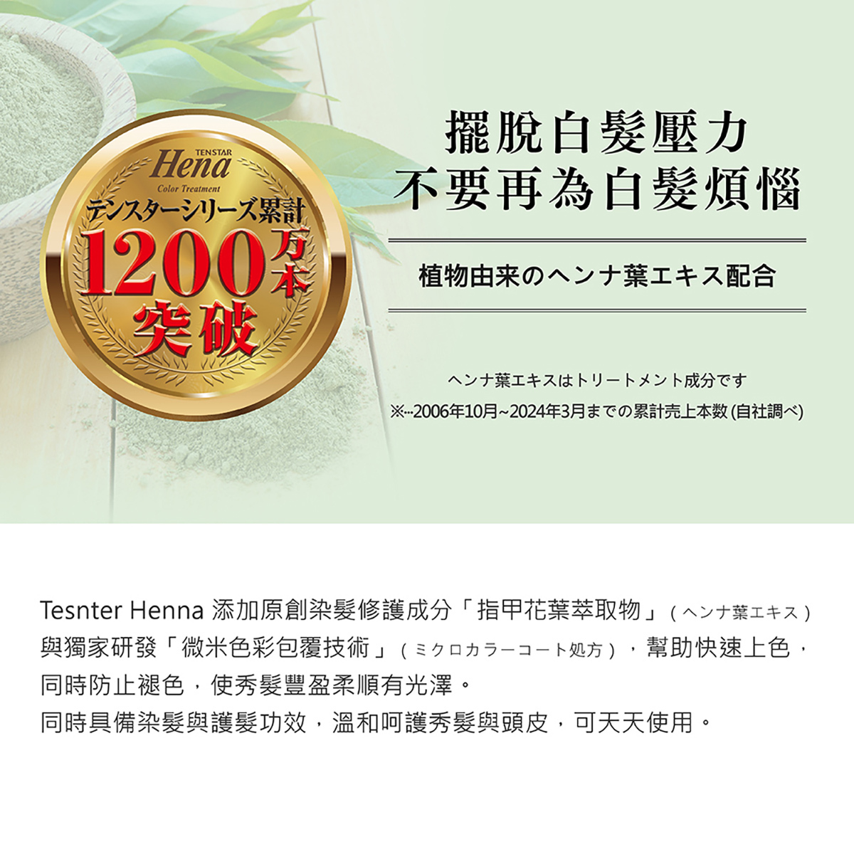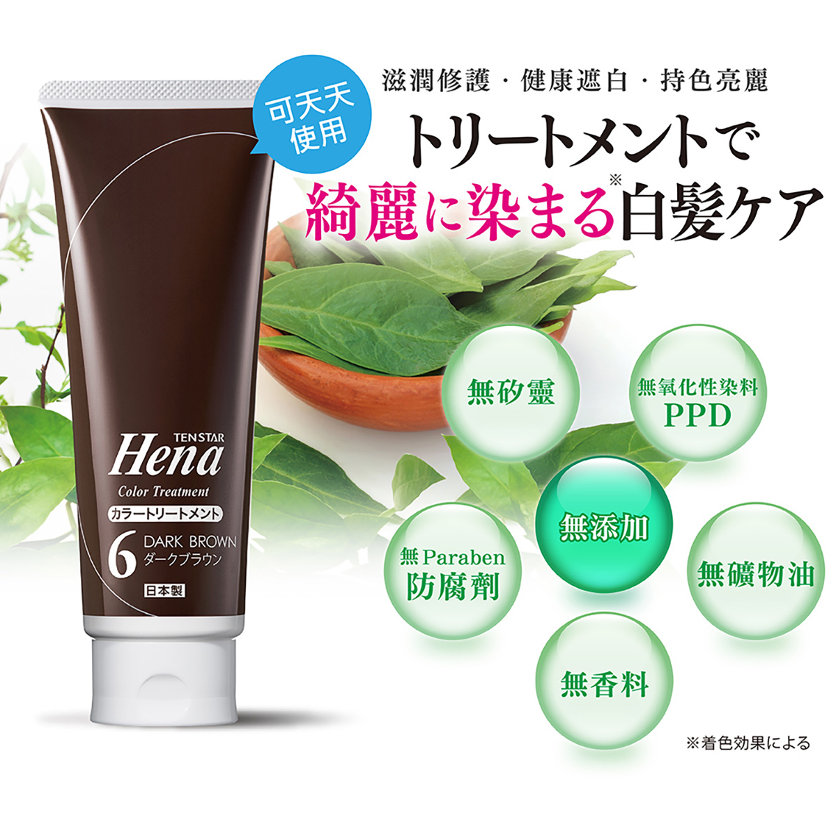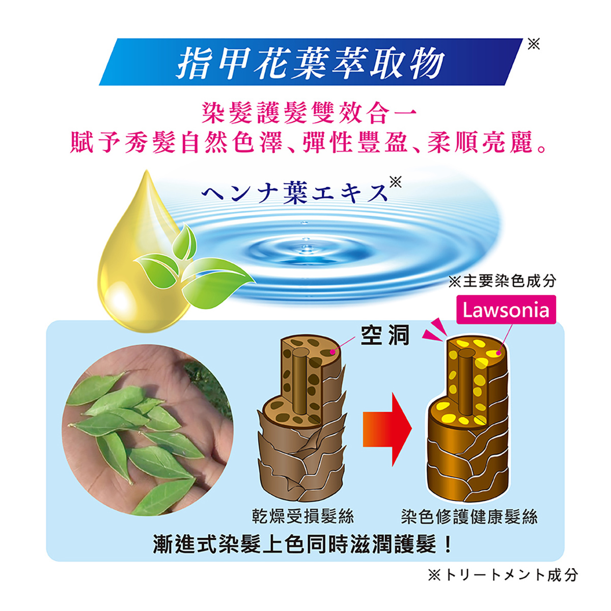 ※指甲花葉萃取物為護髮成分,染色成分為HC色素.