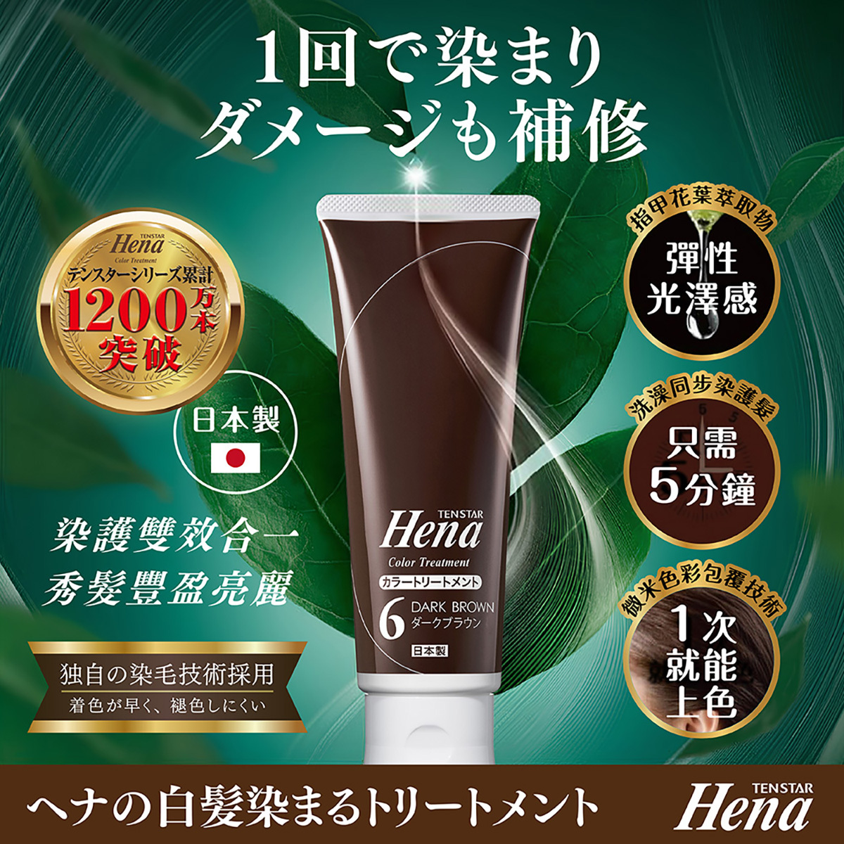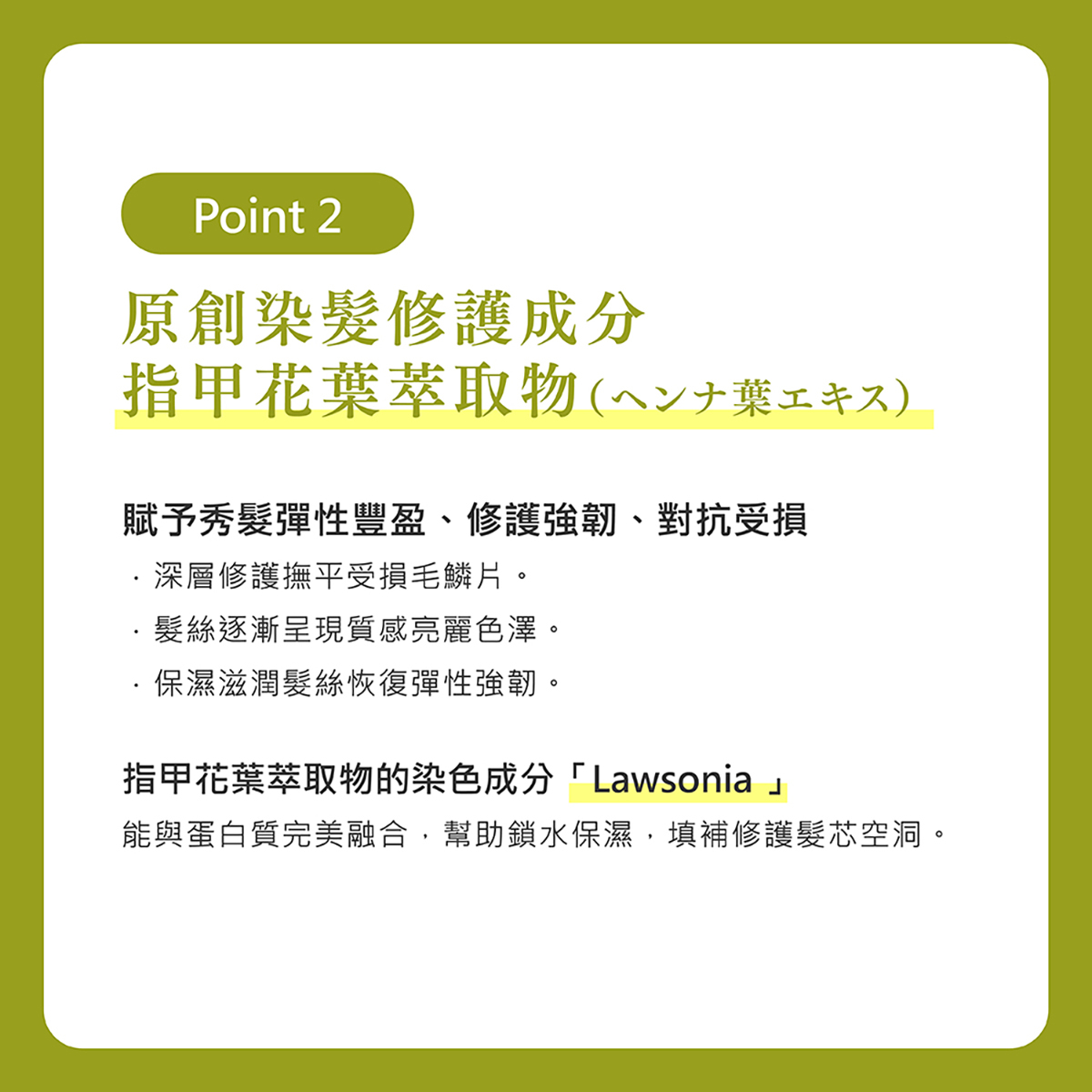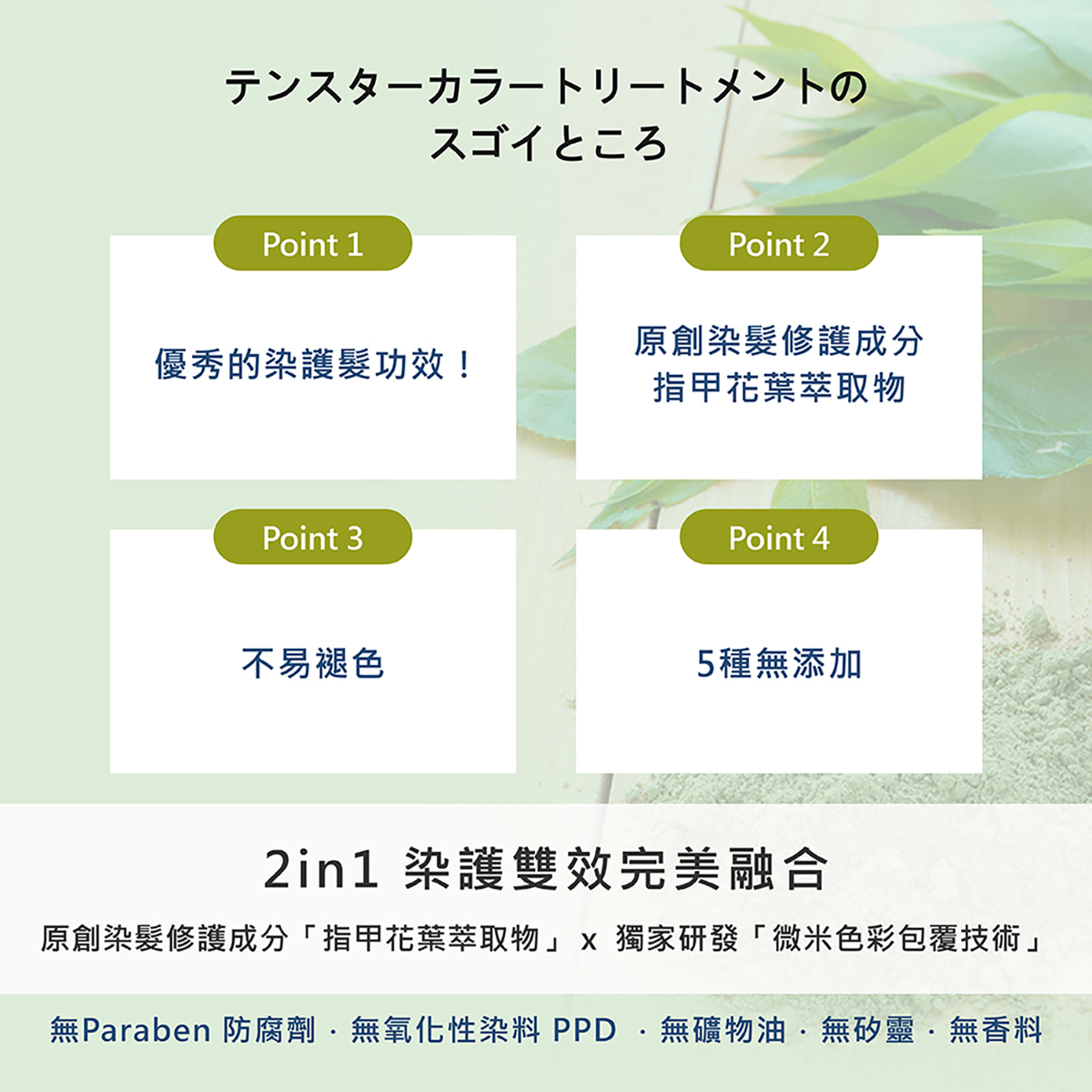 ※指甲花葉萃取物為護髮成分,染色成分為HC色素.