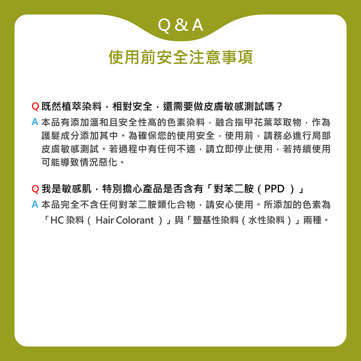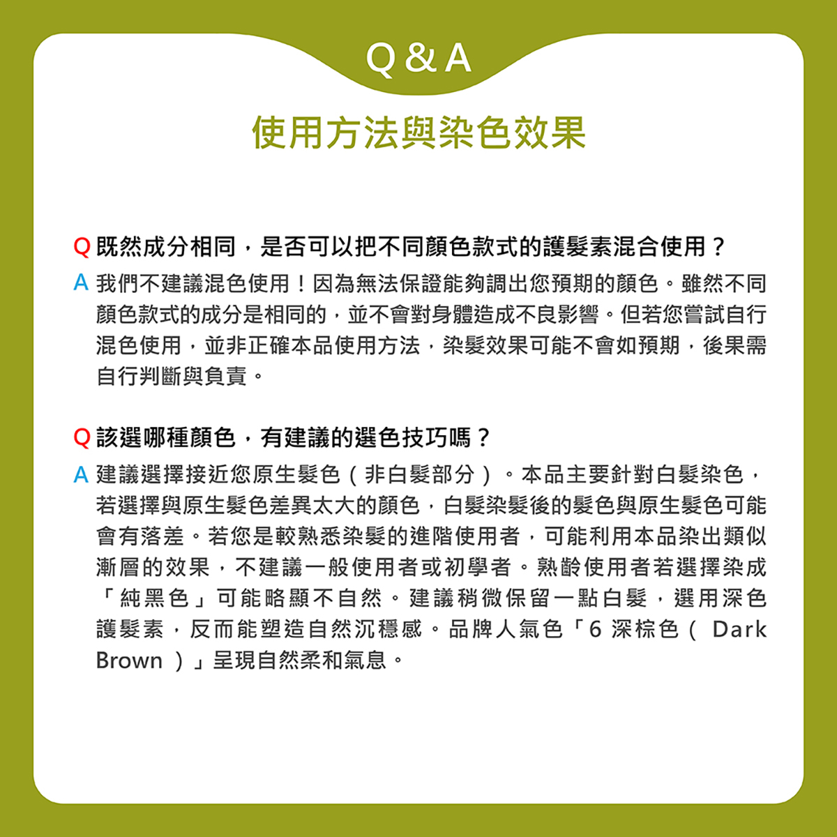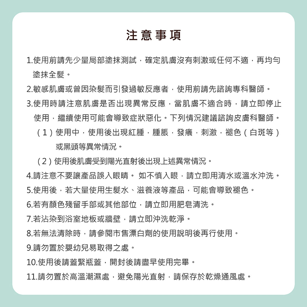 2.敏感肌膚或曾因染髮而引發過敏反應者,使用前請先諮詢專家建議。