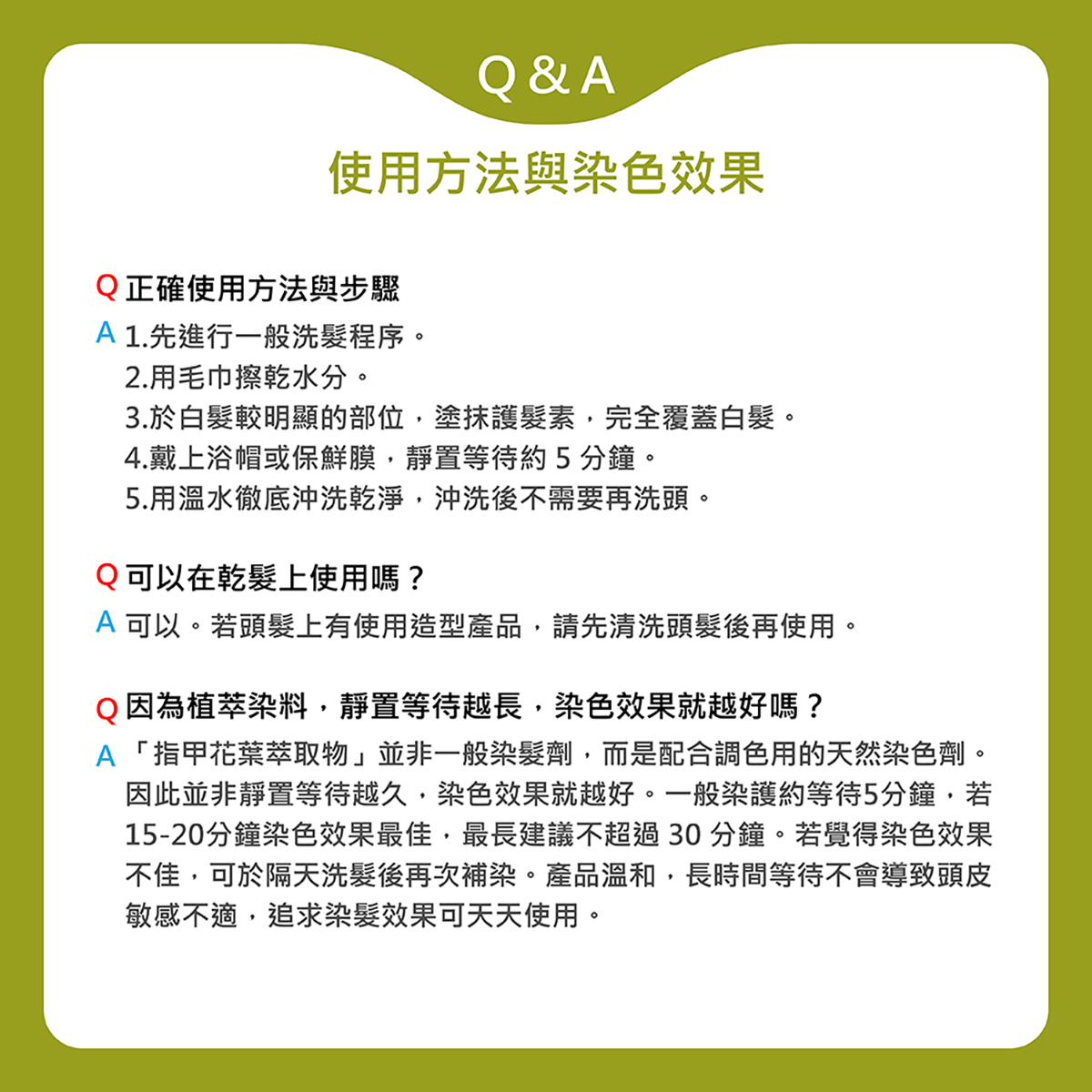 1.使用前請先少量局部塗抹測試,確定肌膚沒有刺激或任何不適,再均勻塗抹全髮。