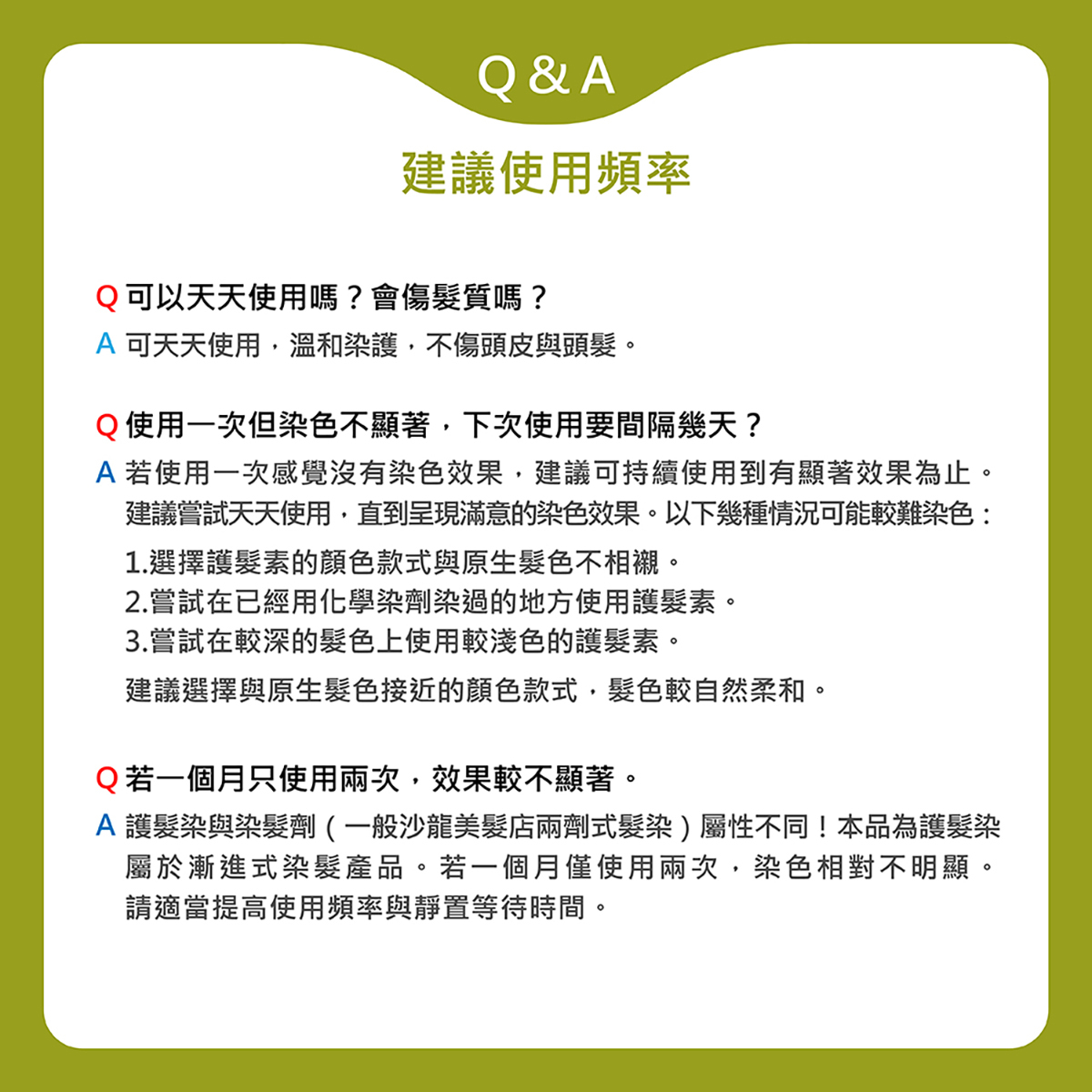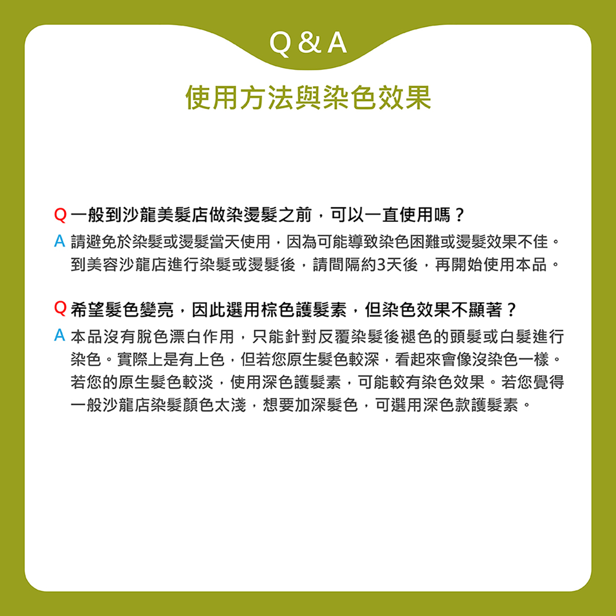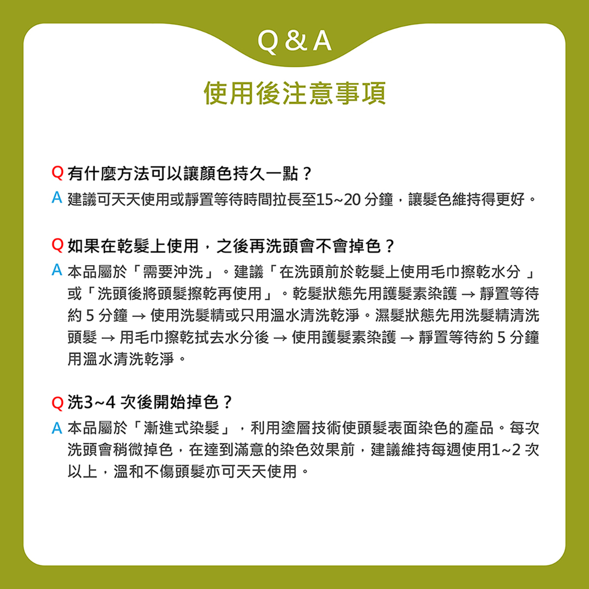5.使用後若大量使用育髮水,頭皮養護液等產品,可能會導致褪色。