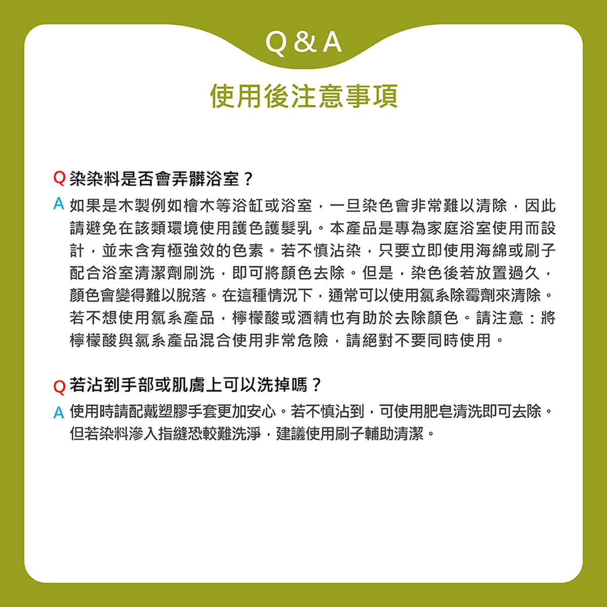6.若有顏色殘留手部或其他部位,請立即用肥皂清洗。