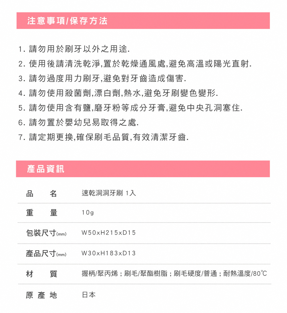 4.請勿使用殺菌劑、漂白劑、熱水,避免牙刷變色變形.