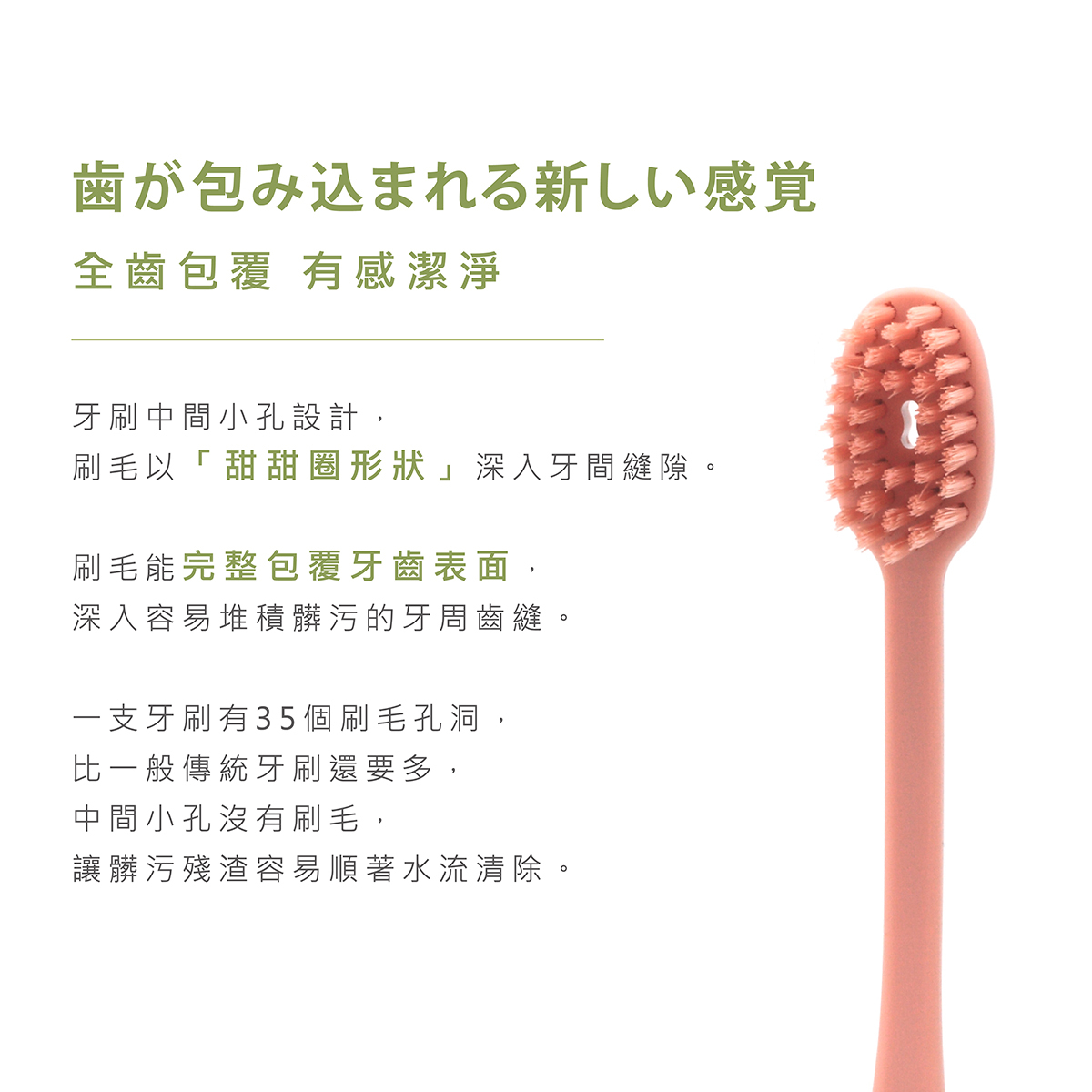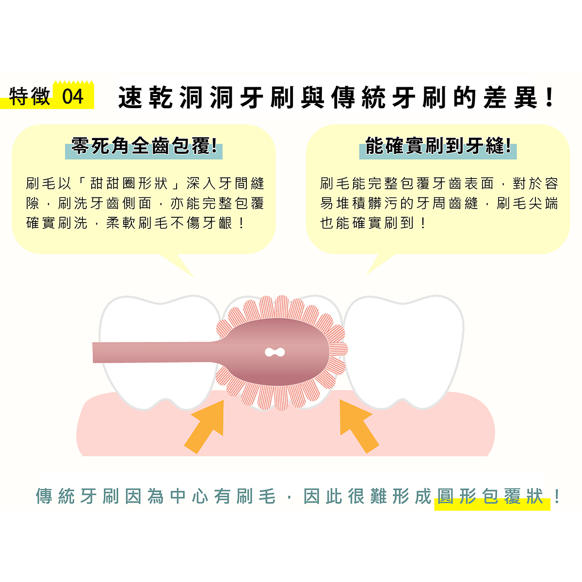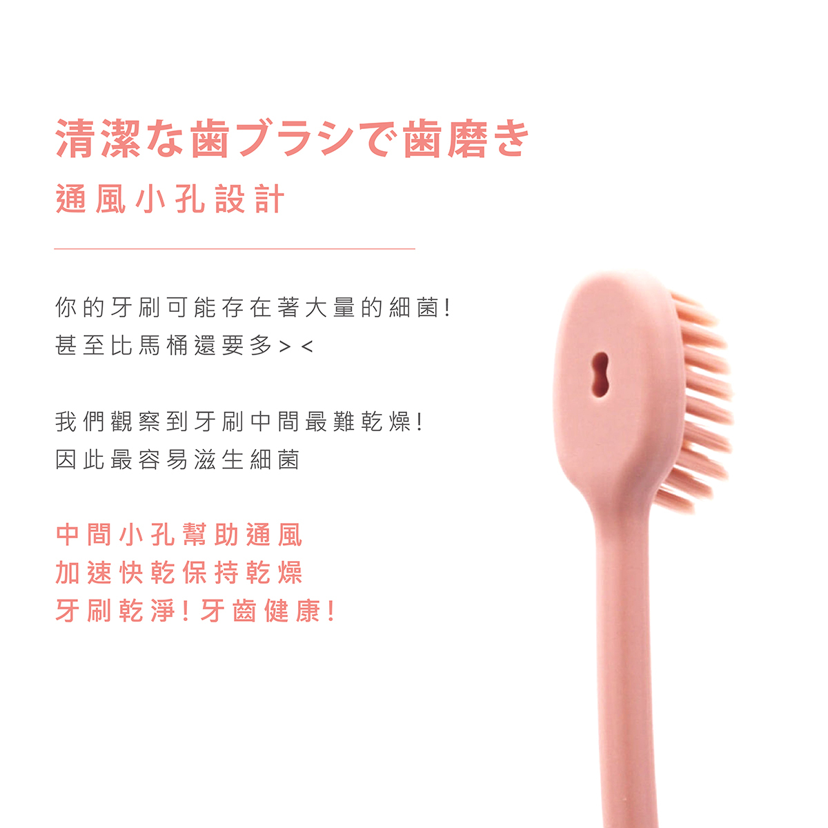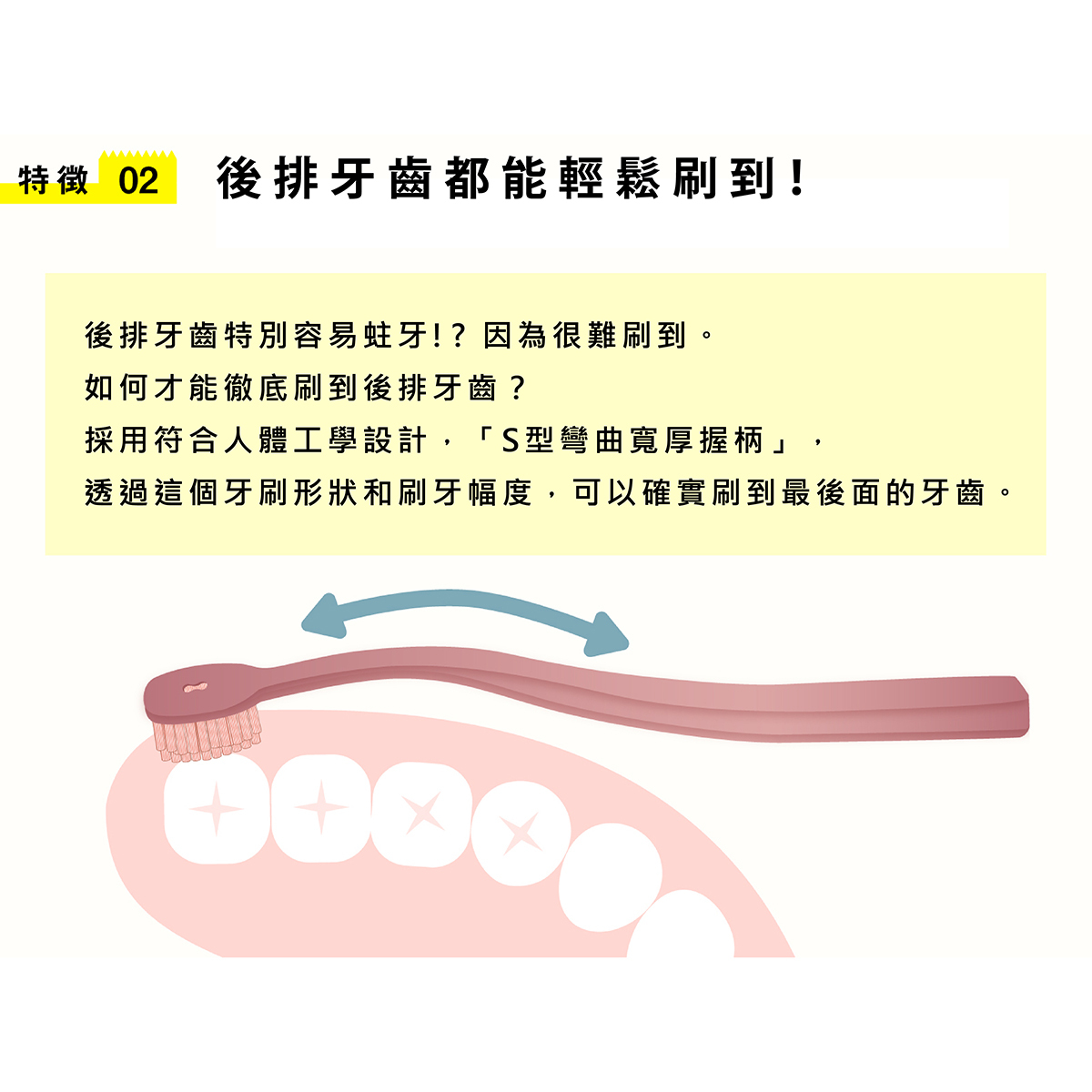 中央孔洞加速刷毛乾燥.S型曲線設計,方便深入口腔,輕鬆潔牙零死角.