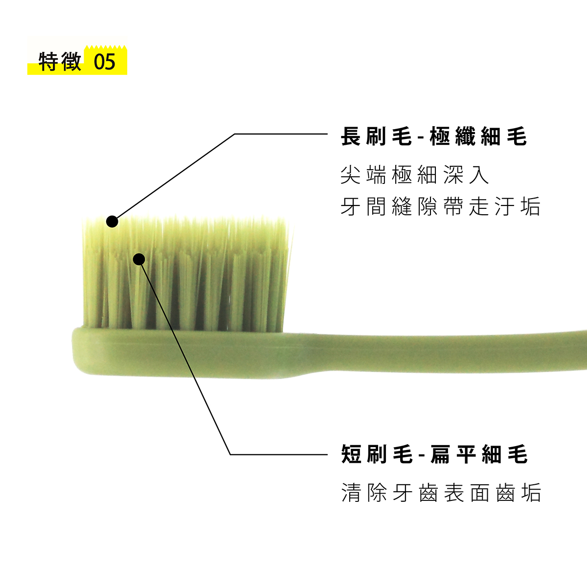 2種軟刷毛,平毛可刷除表面齒垢,極細毛可深入牙槽縫隙清潔髒污,刷牙更有效率.