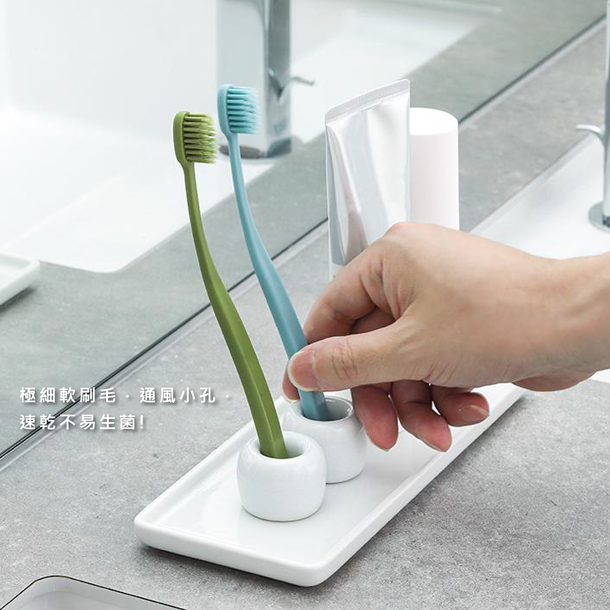 特點:中央孔洞加速刷毛乾燥.S型曲線設計,方便深入口腔,輕鬆潔牙零死角.微弧度粗握把刷牙時更順手. 2種軟刷毛,平毛可刷除表面齒垢,極細毛可深入牙槽縫隙清潔髒污,刷牙更有效率.