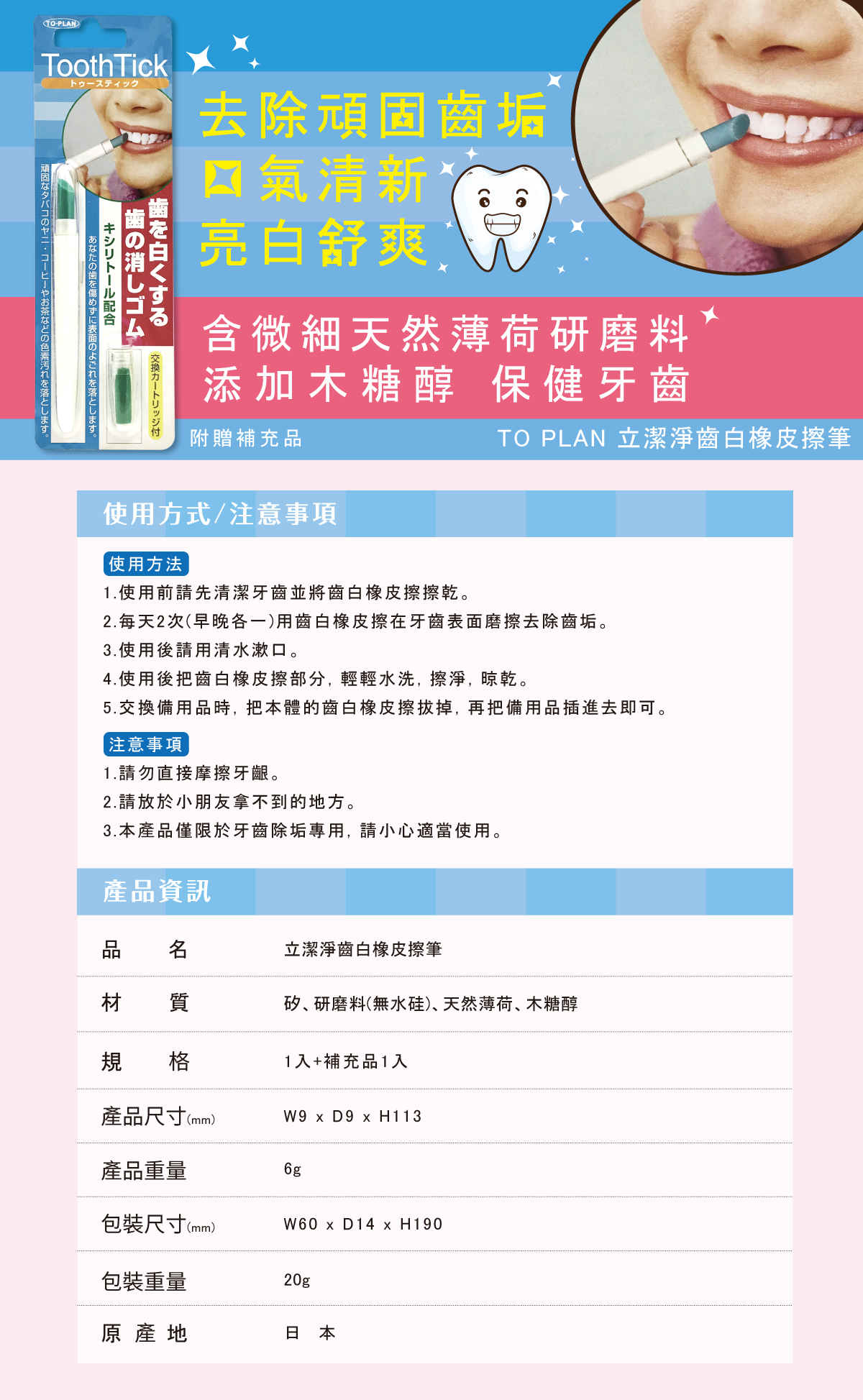 1.含微細天然薄荷研磨料,可去除頑固齒垢,口氣清新舒爽。