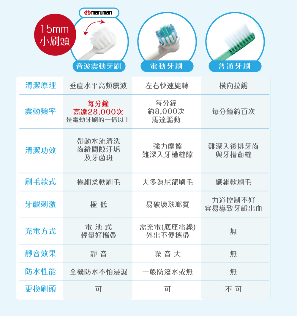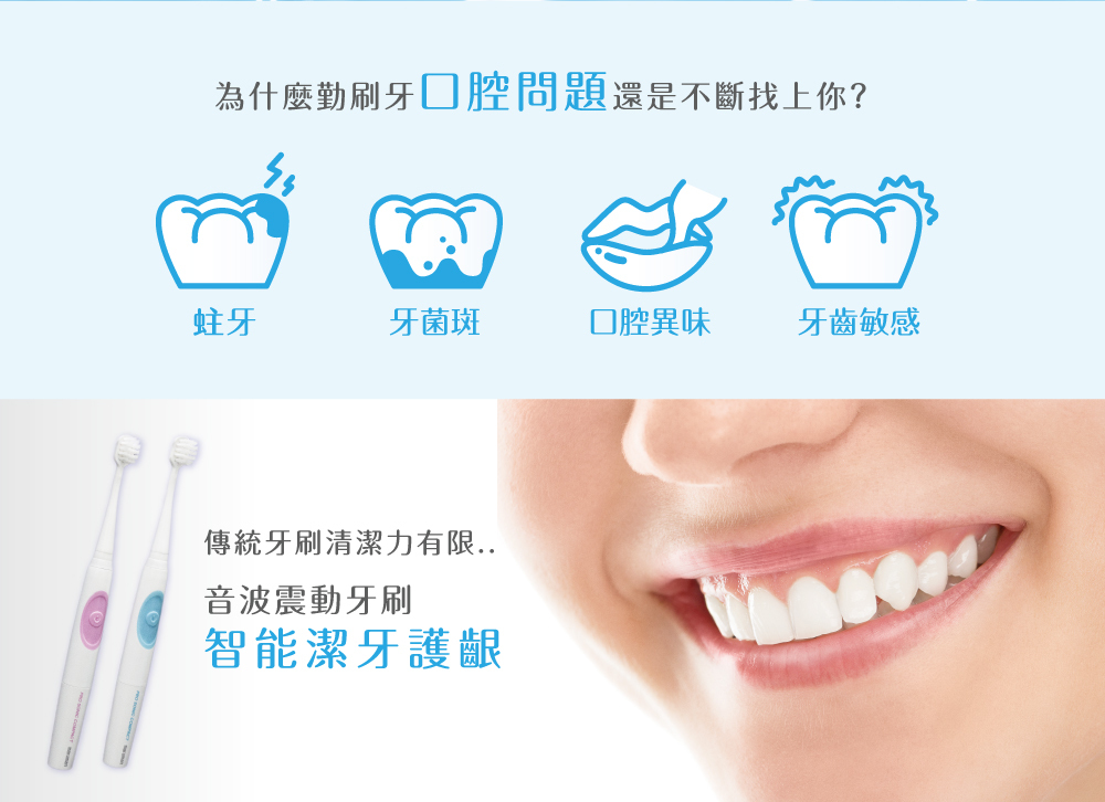 2.請勿用力或長時間持續清潔同一處,可能使牙齒或牙齦受損。牙周病患者欲使用本品前請向醫師諮詢。