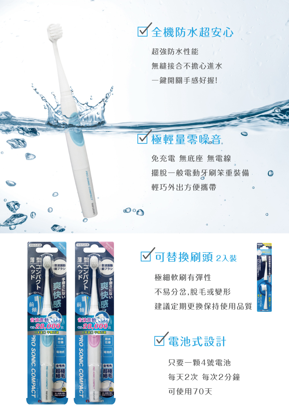 電動牙刷入門首選,外型輕巧,日常基本防水性能完整。