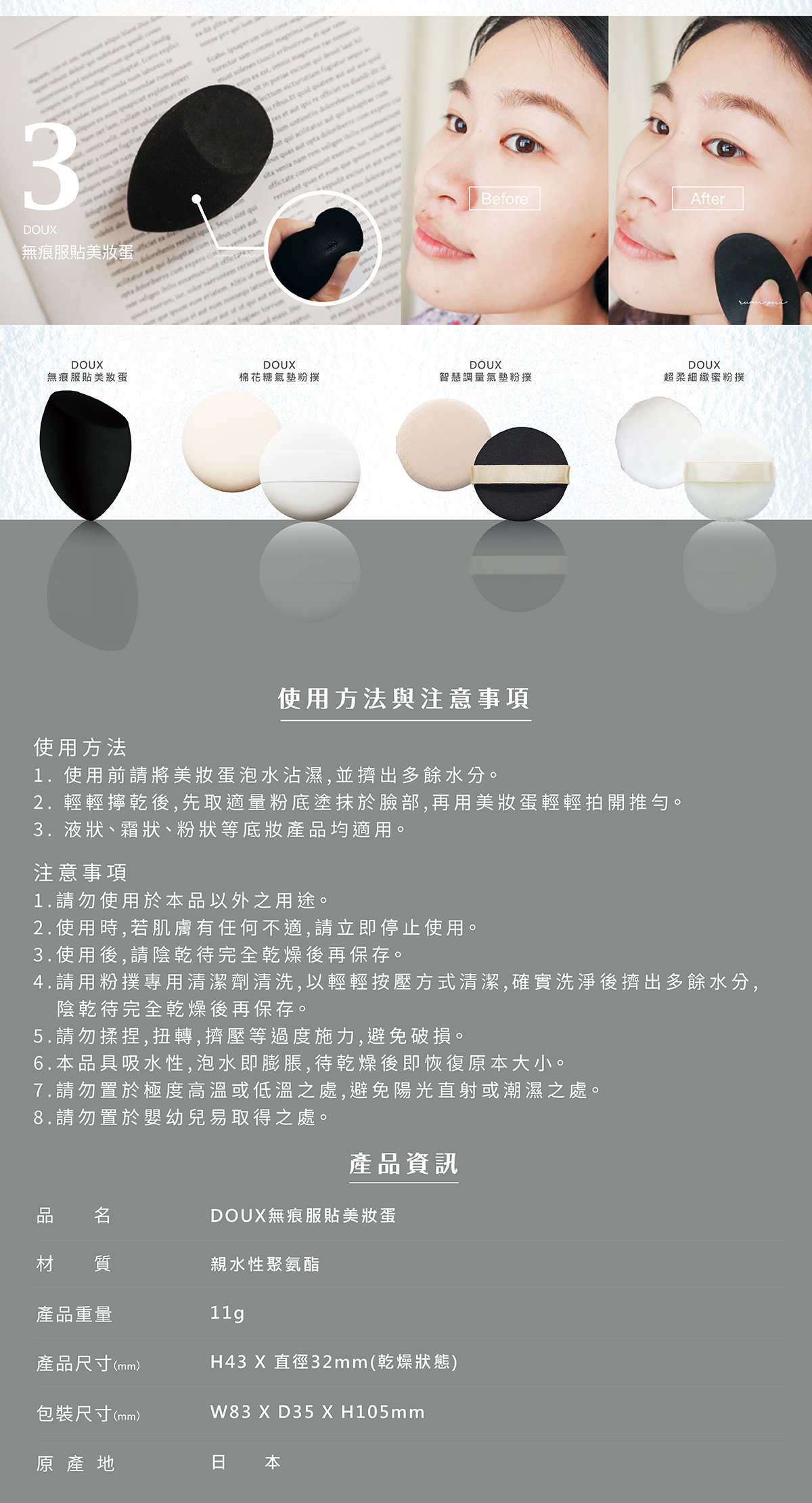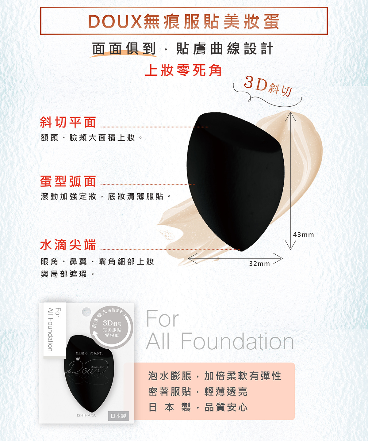 泡水膨脹加倍柔軟,底妝密著服貼