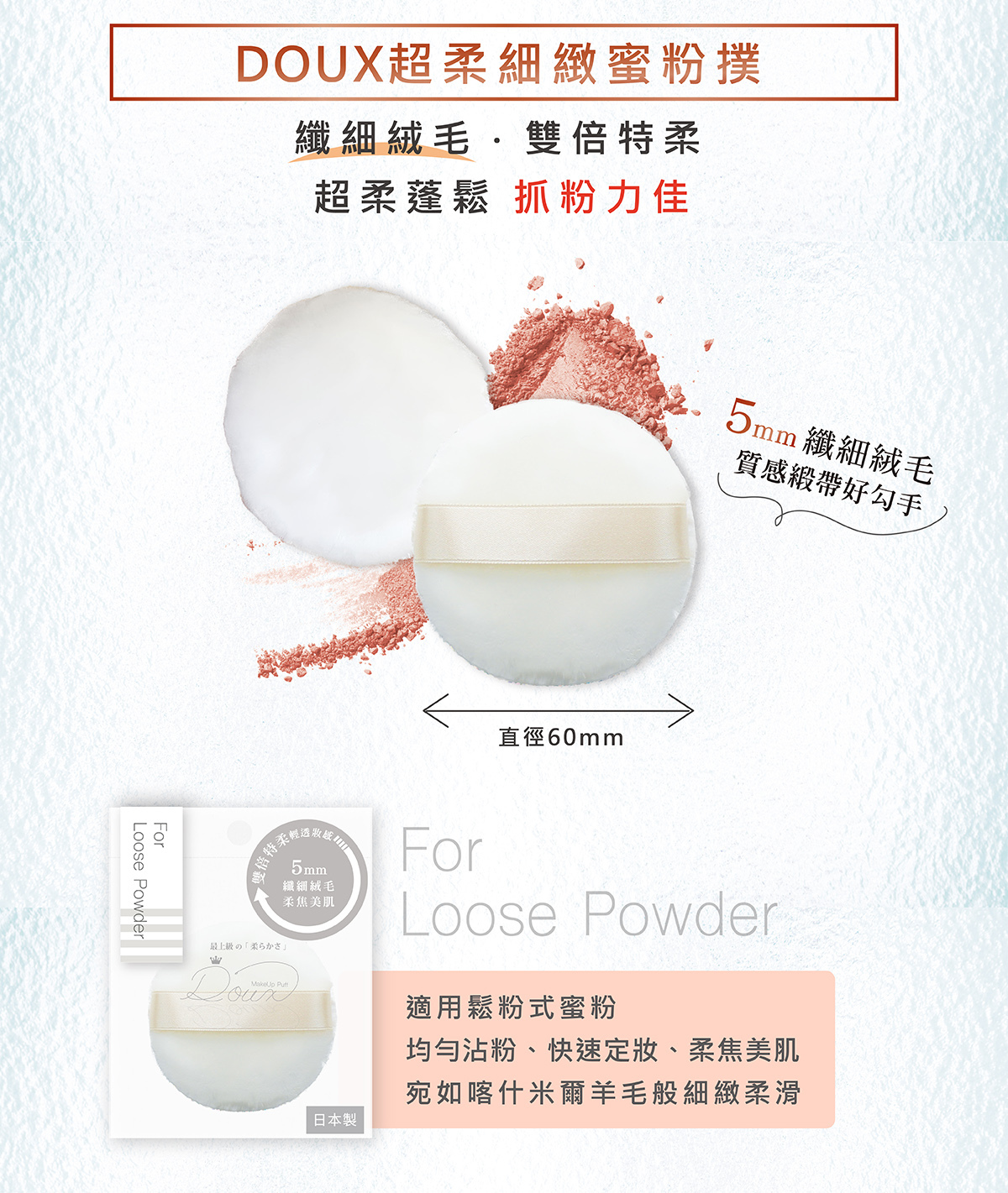 粉體易沾附,輕拍柔焦美肌