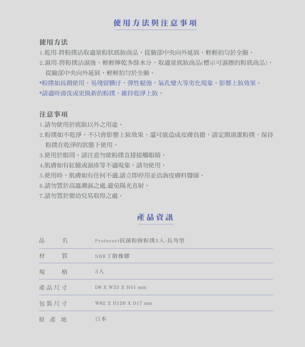 超值3入裝,建議定期清洗或更換,保持粉撲乾淨與質感妝容.