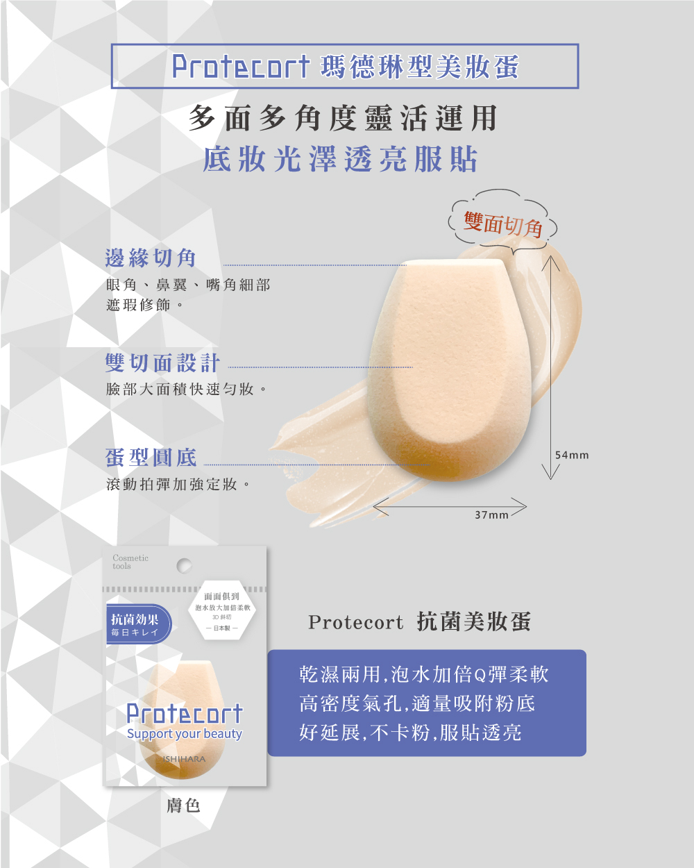 石原商店 Protecort抗菌美妝蛋1入/雙面切角(膚)