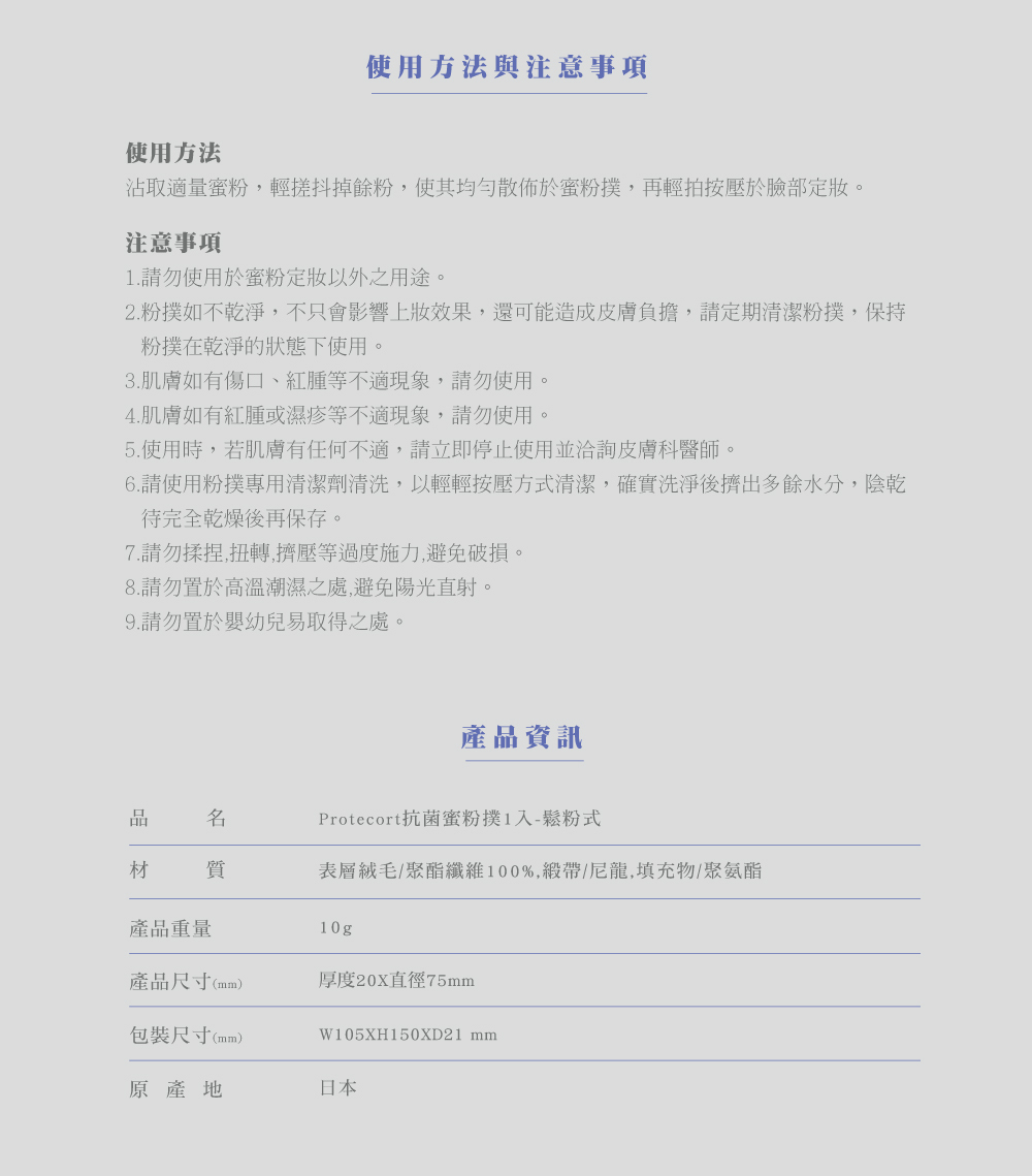 特殊抗菌加工處理 ,天天乾淨上妝,肌膚健康亮麗.
