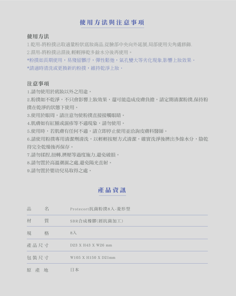 超值8入裝,建議定期清洗或更換,保持粉撲乾淨與質感妝容.