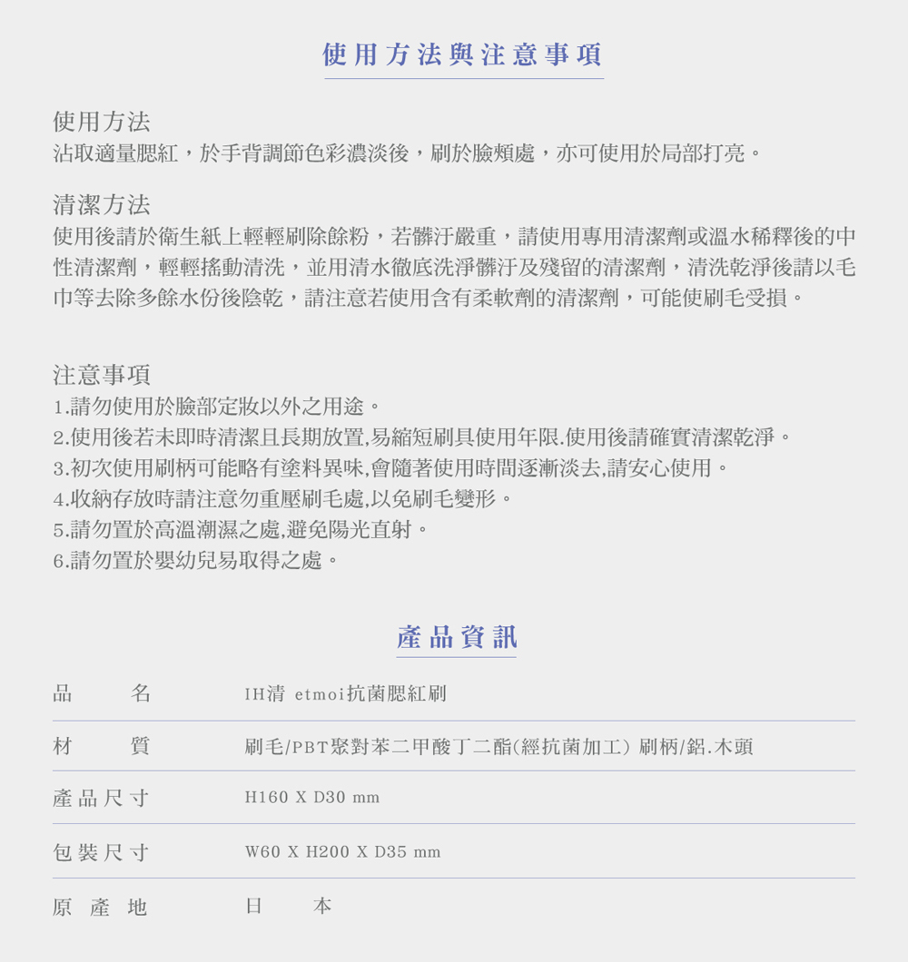 3.初次使用刷柄可能略有塗料異味,會隨著使用時間逐漸淡去,請安心使用。