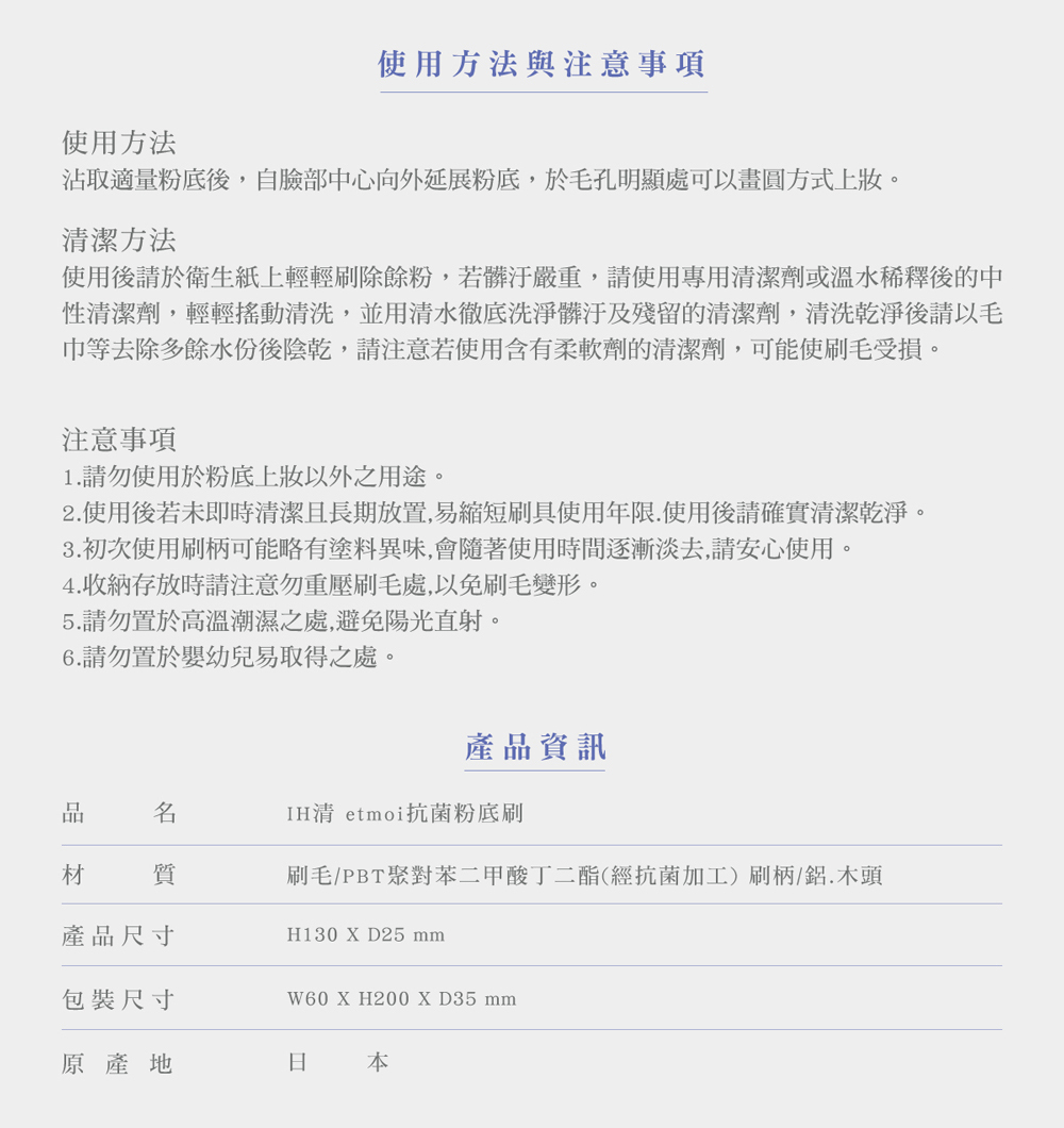 2.使用後若未即時清潔且長期放置,易縮短刷具使用年限,使用後請確實清潔乾淨。