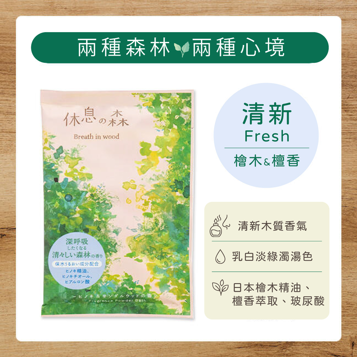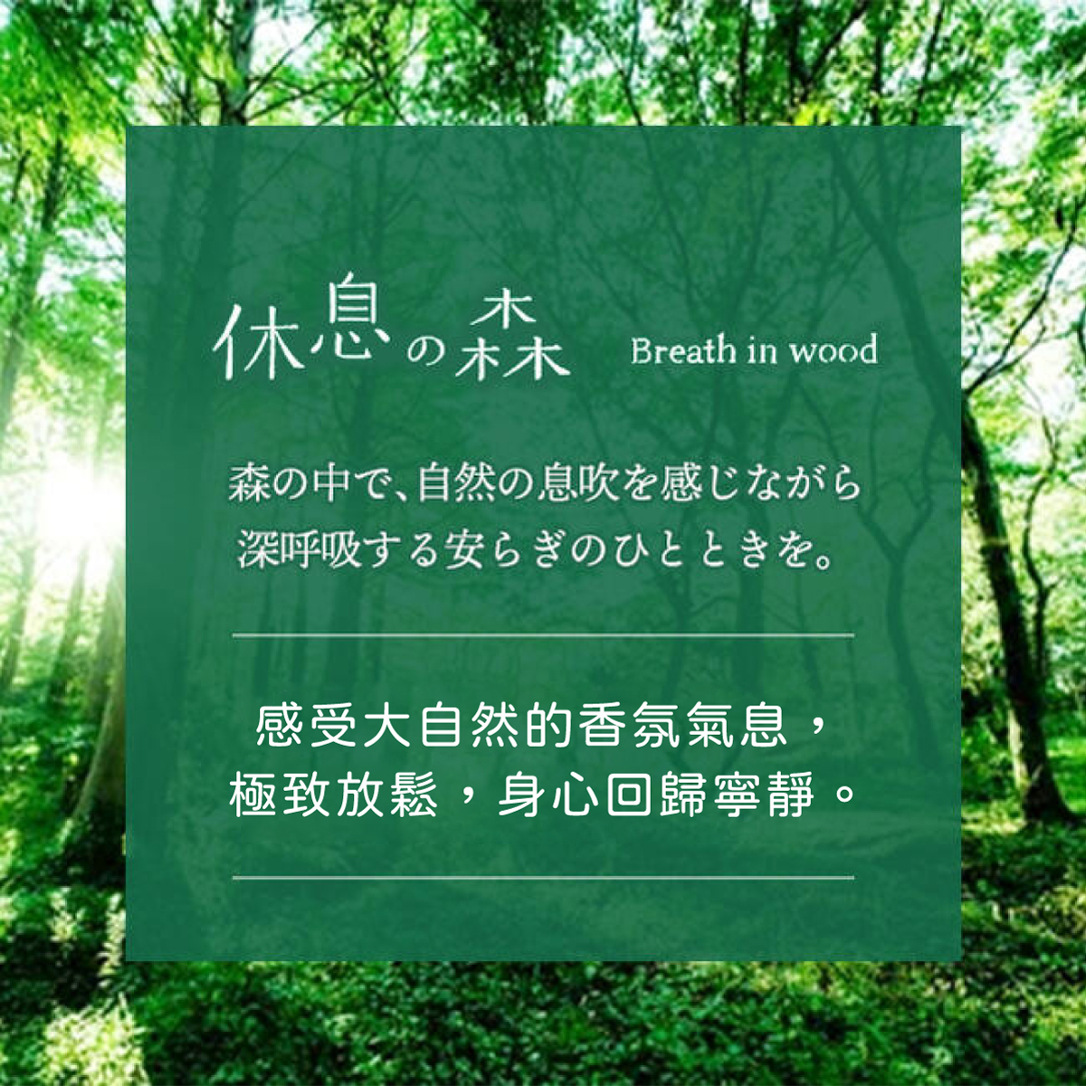 蘊含木質香氛成分「蒎烯」,彷彿置身於森林裡,
