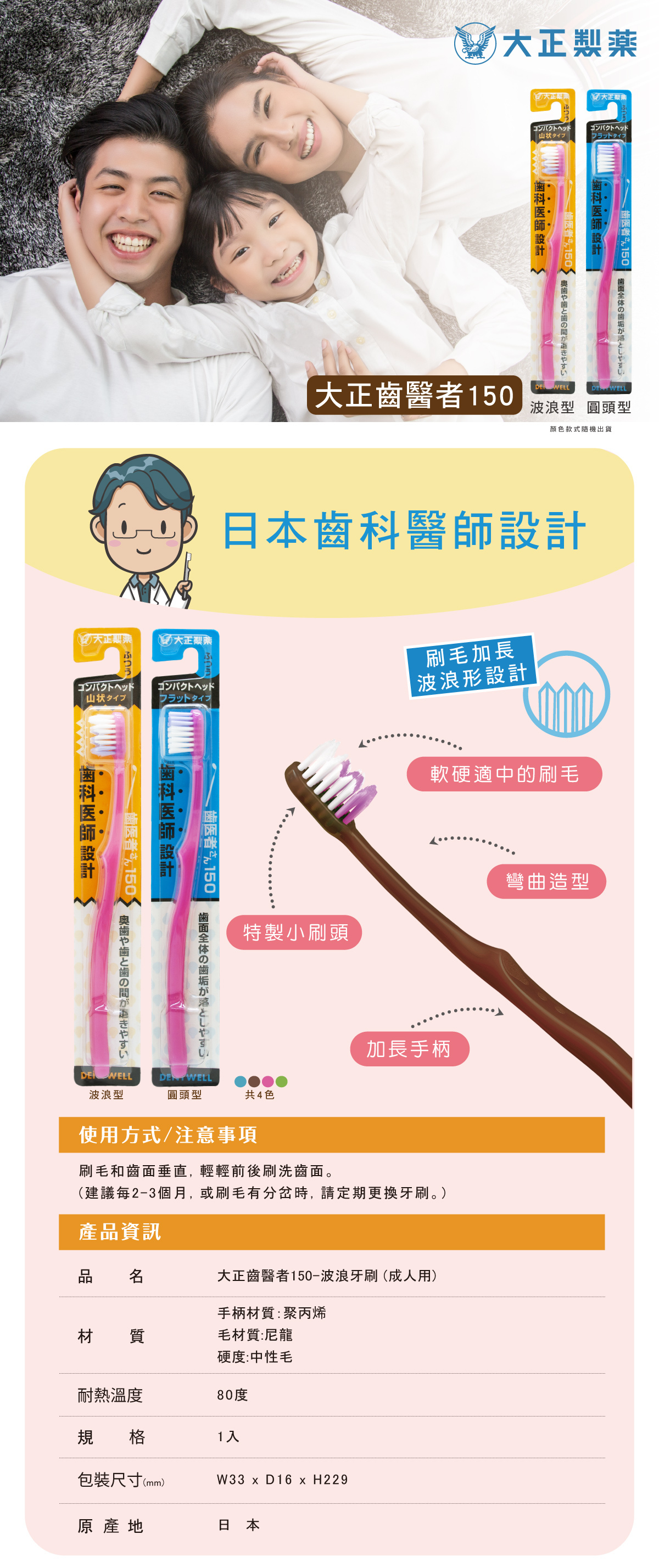 【品名】大正製藥 齒醫者150牙刷 (圓頭牙刷/波浪牙刷)