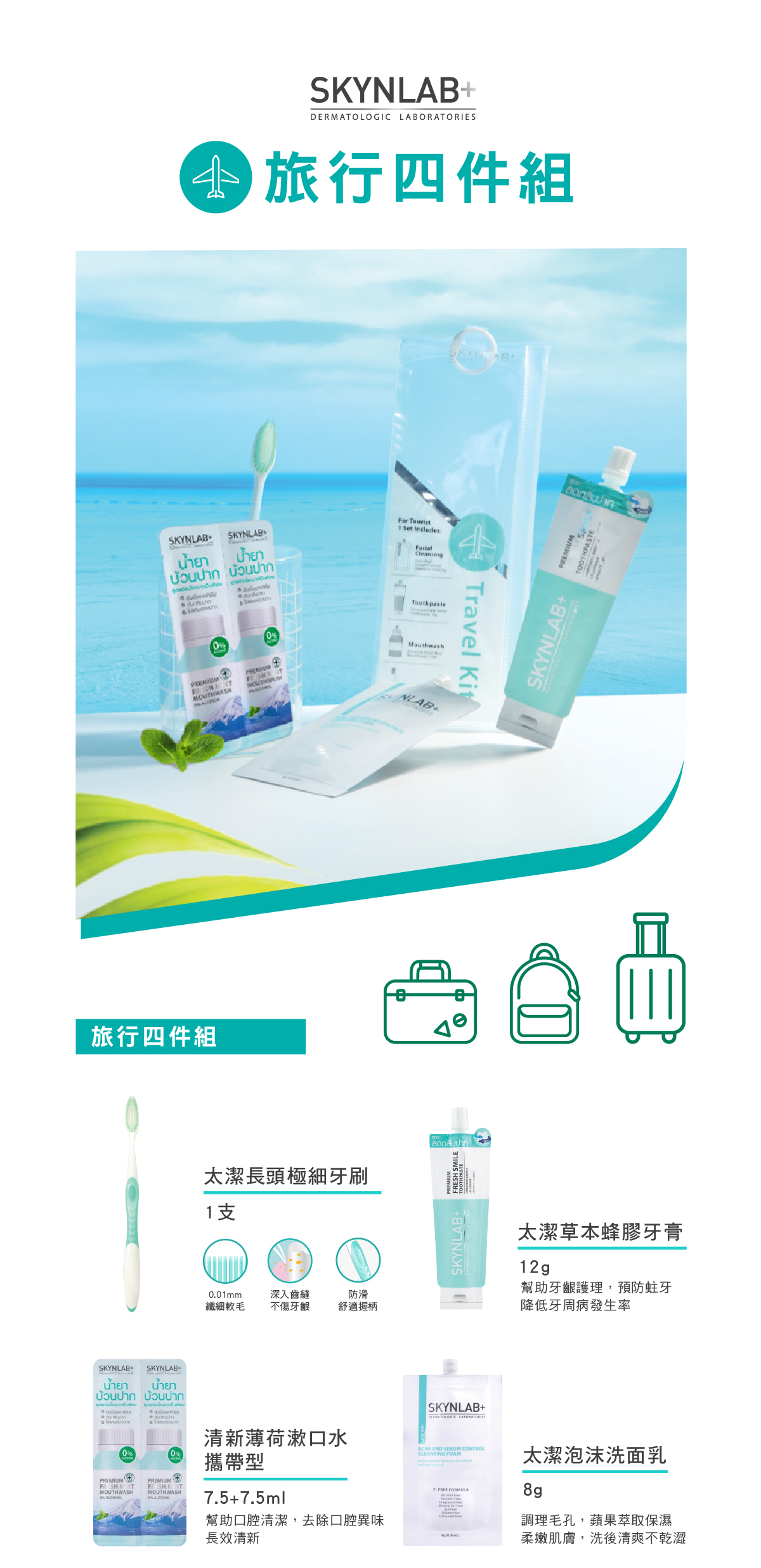 【數量/重量】4入(牙刷1入/牙膏12g/漱口水7.5+7.5ml /洗面乳8g)/80g
